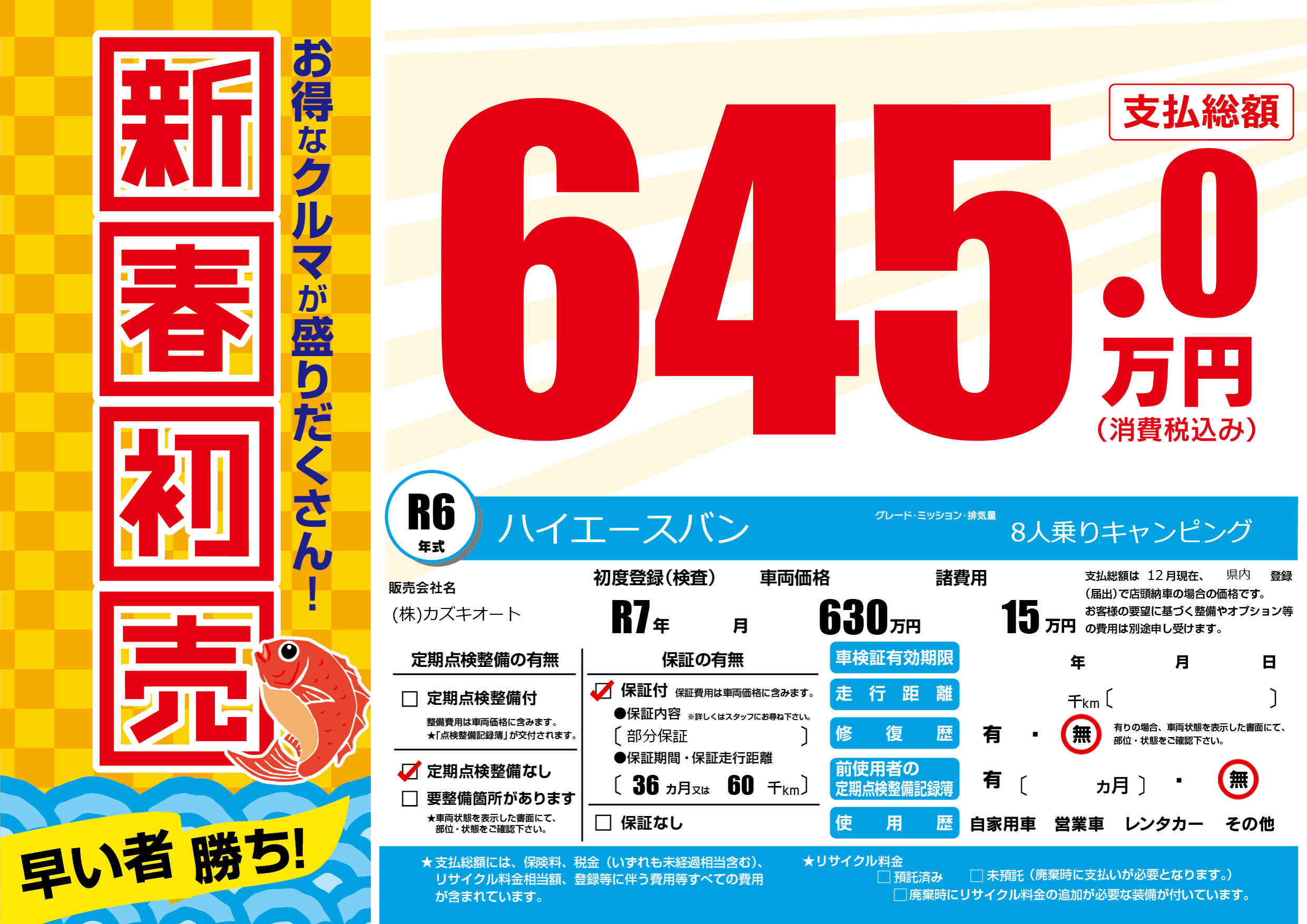 | 走行キロ | - | 初年度登録 | R7年---月 |