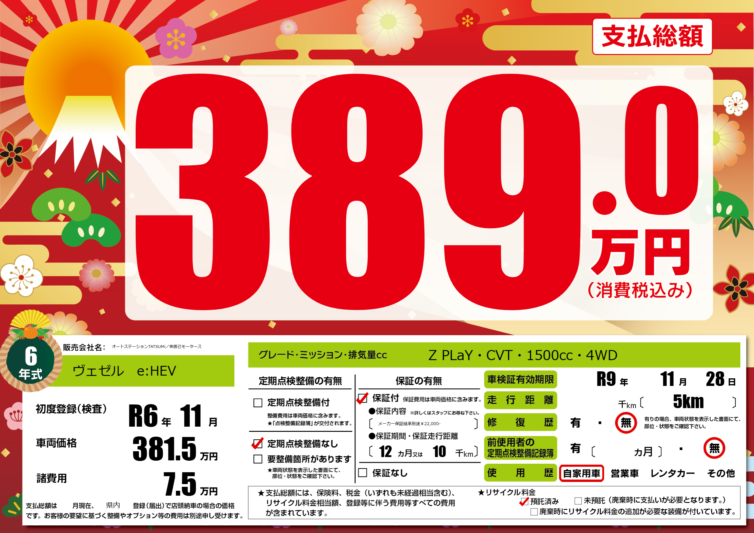 | 走行キロ | - | 初年度登録 | R6年11月 |