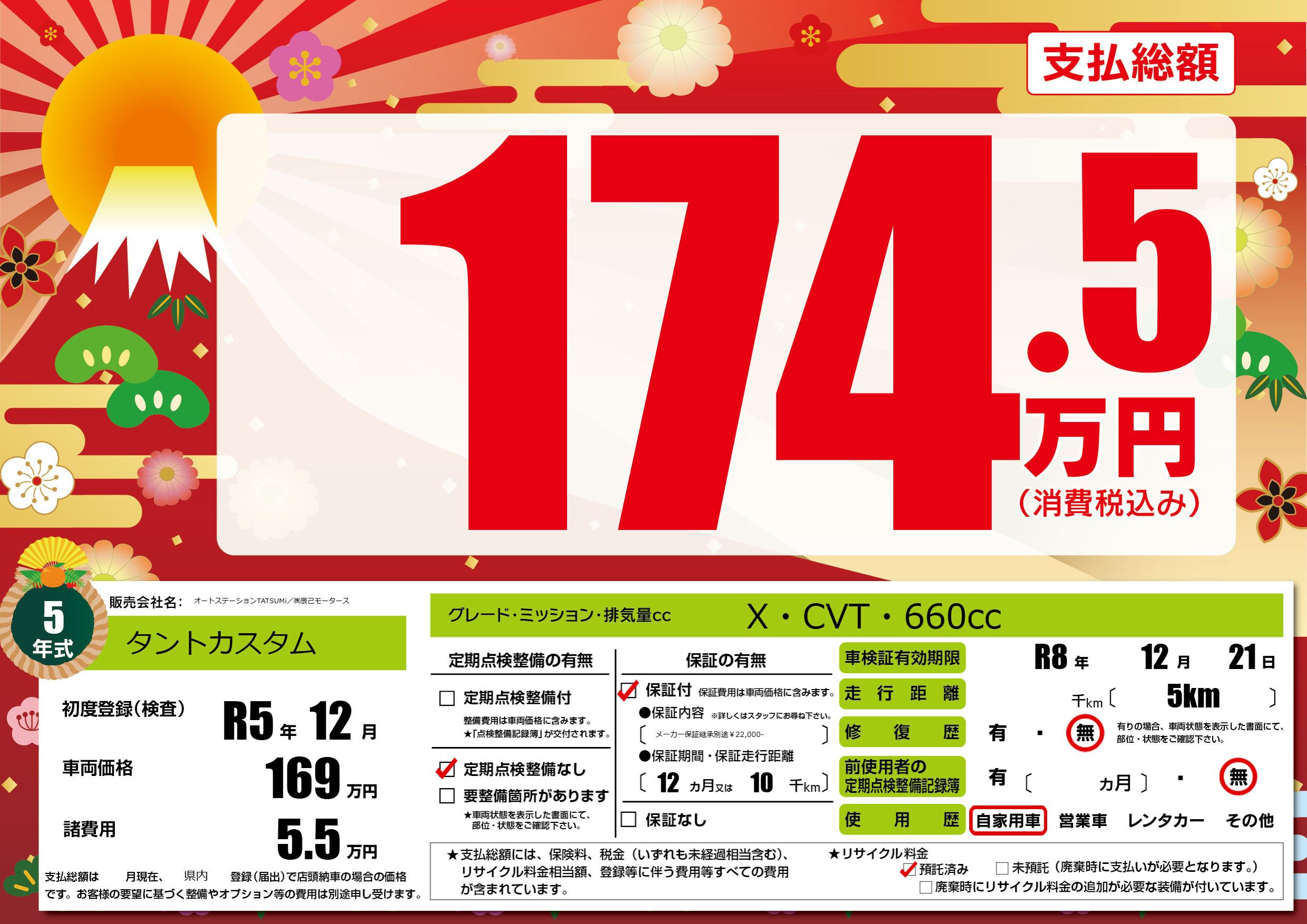 | 走行キロ | - | 初年度登録 | R5年12月 |