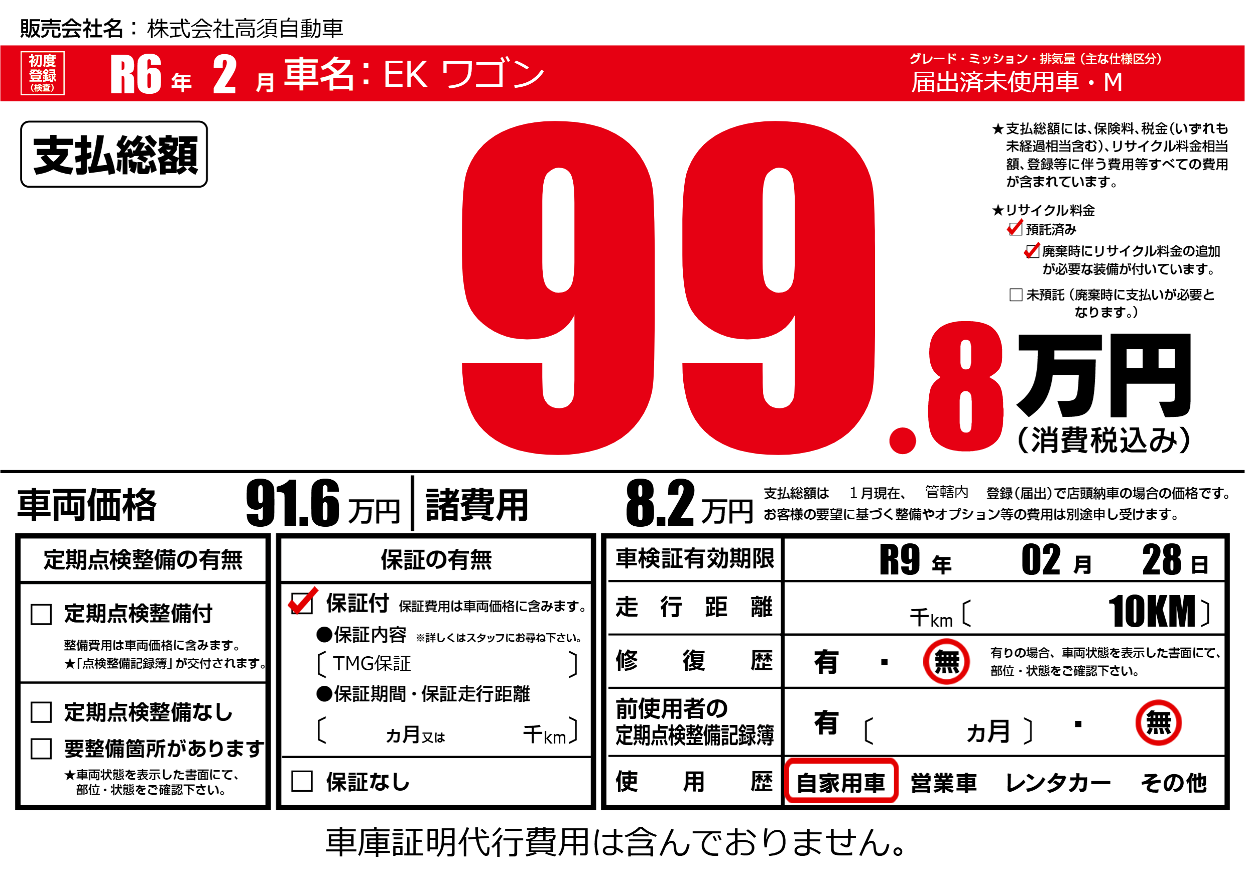 保証付き 保証内容(TMG保証) ---ヶ月または()千kmまで |