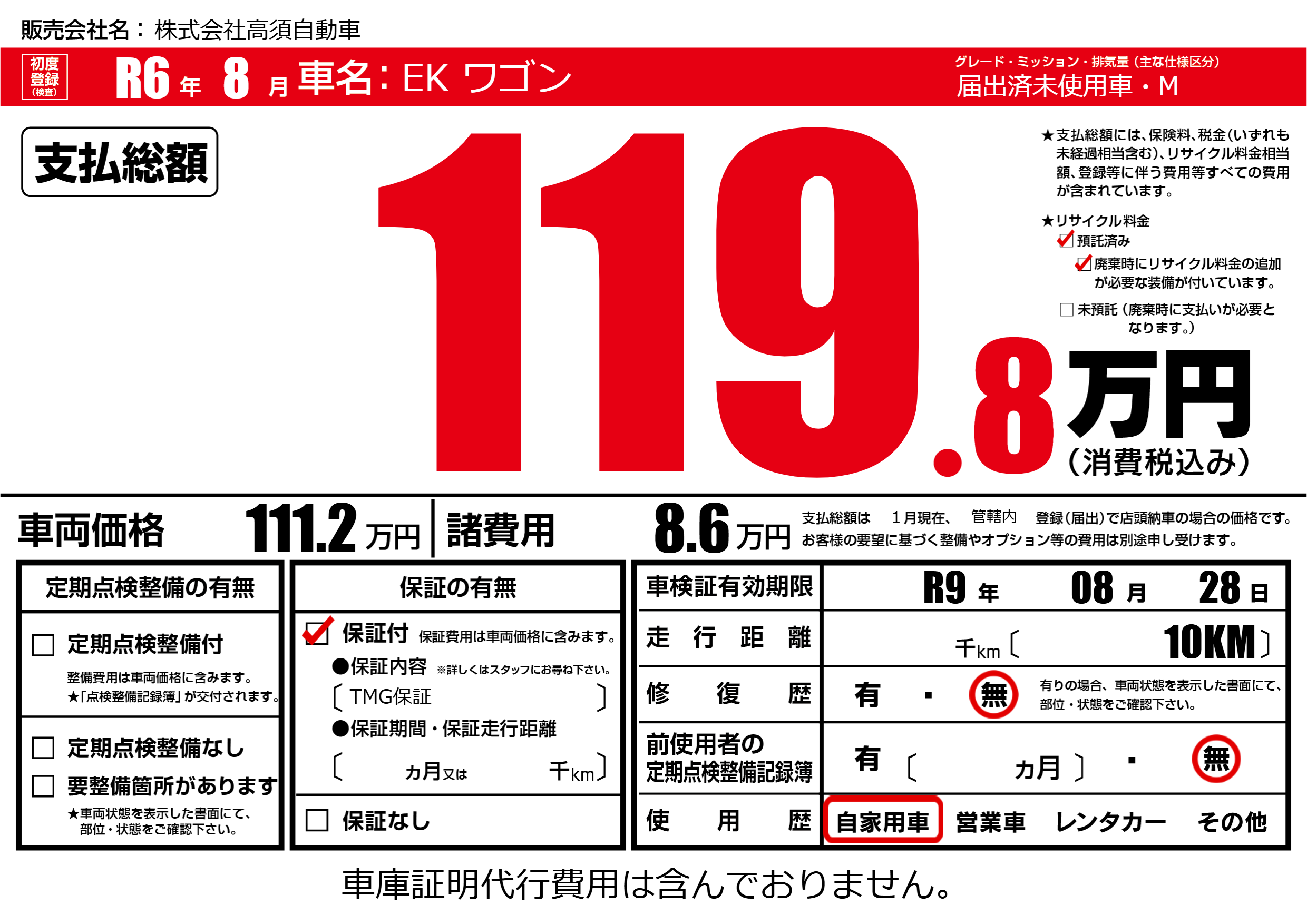 保証付き 保証内容(TMG保証) ---ヶ月または()千kmまで |