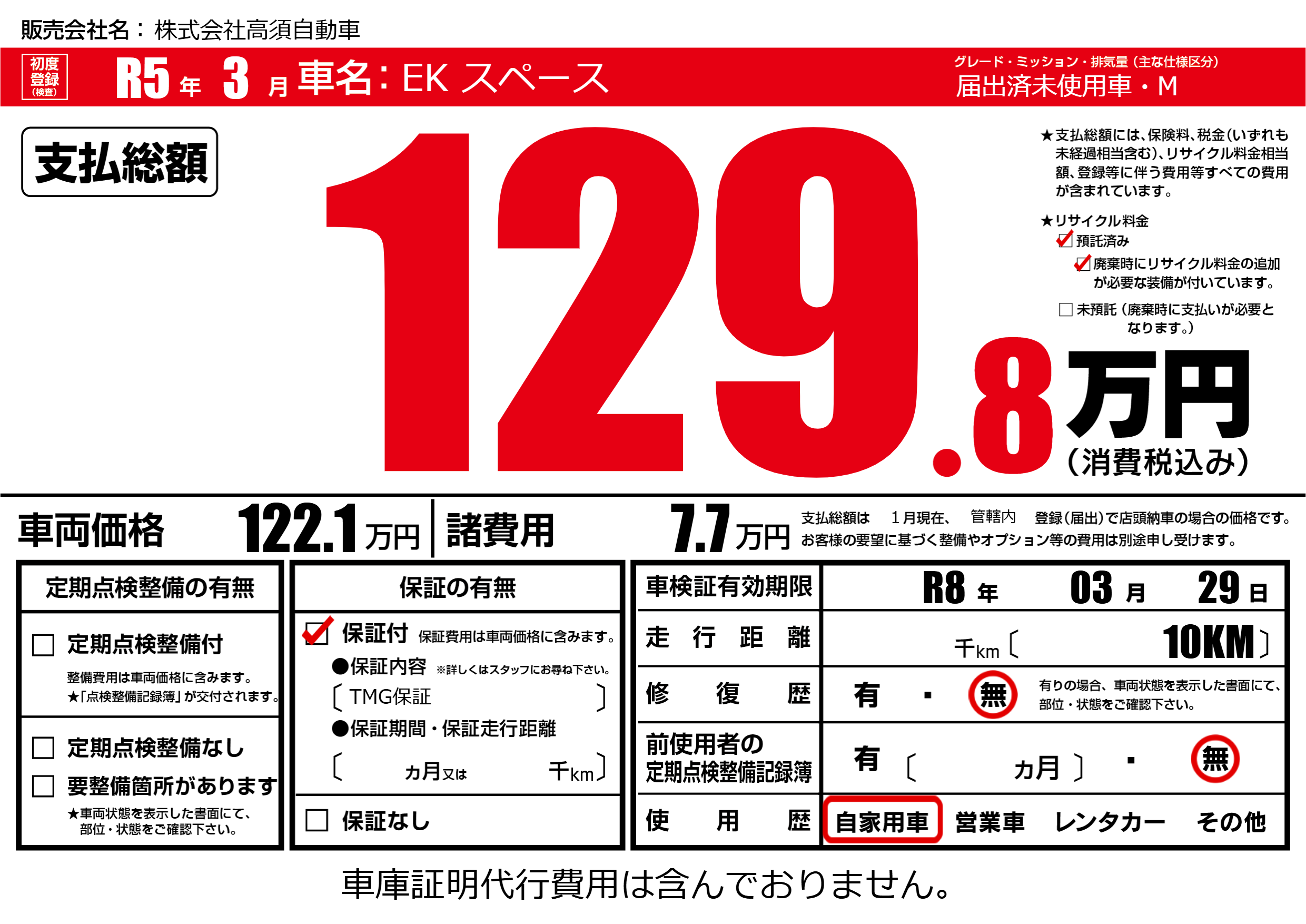 なし | 車検制限 | R8年03月29月 |