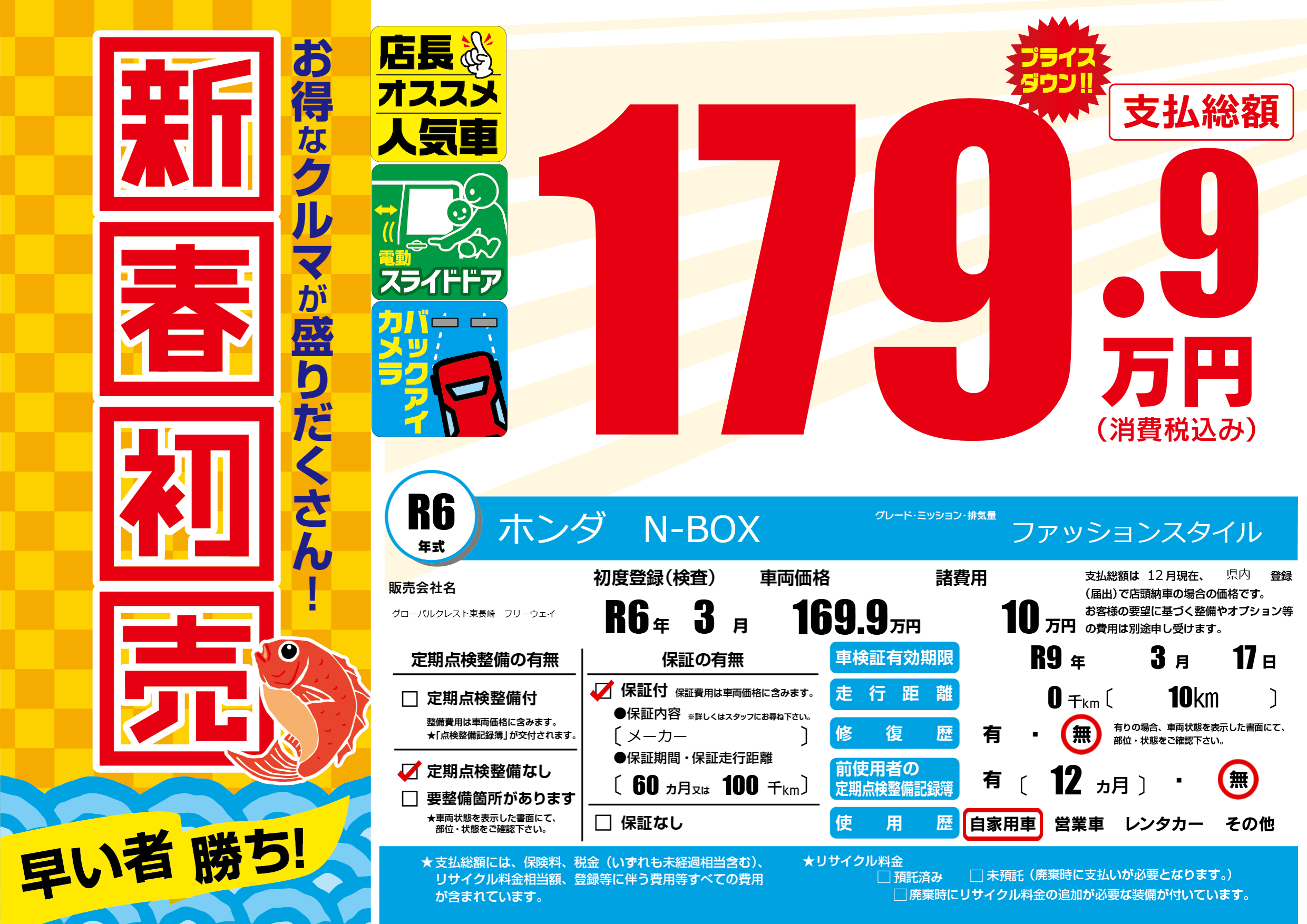 | 走行キロ | - | 初年度登録 | R6年3月 |