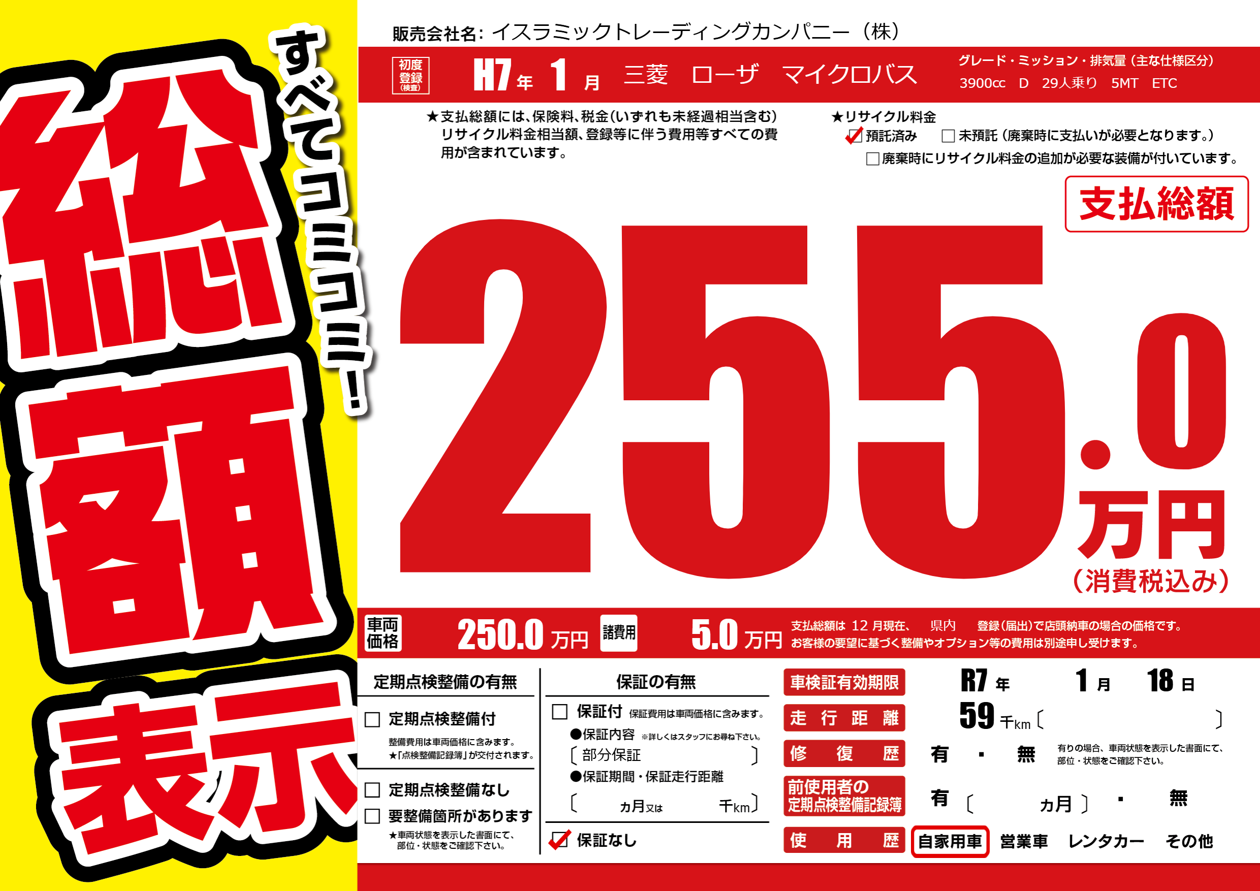 なし | 車検制限 | R7年1月18月 |