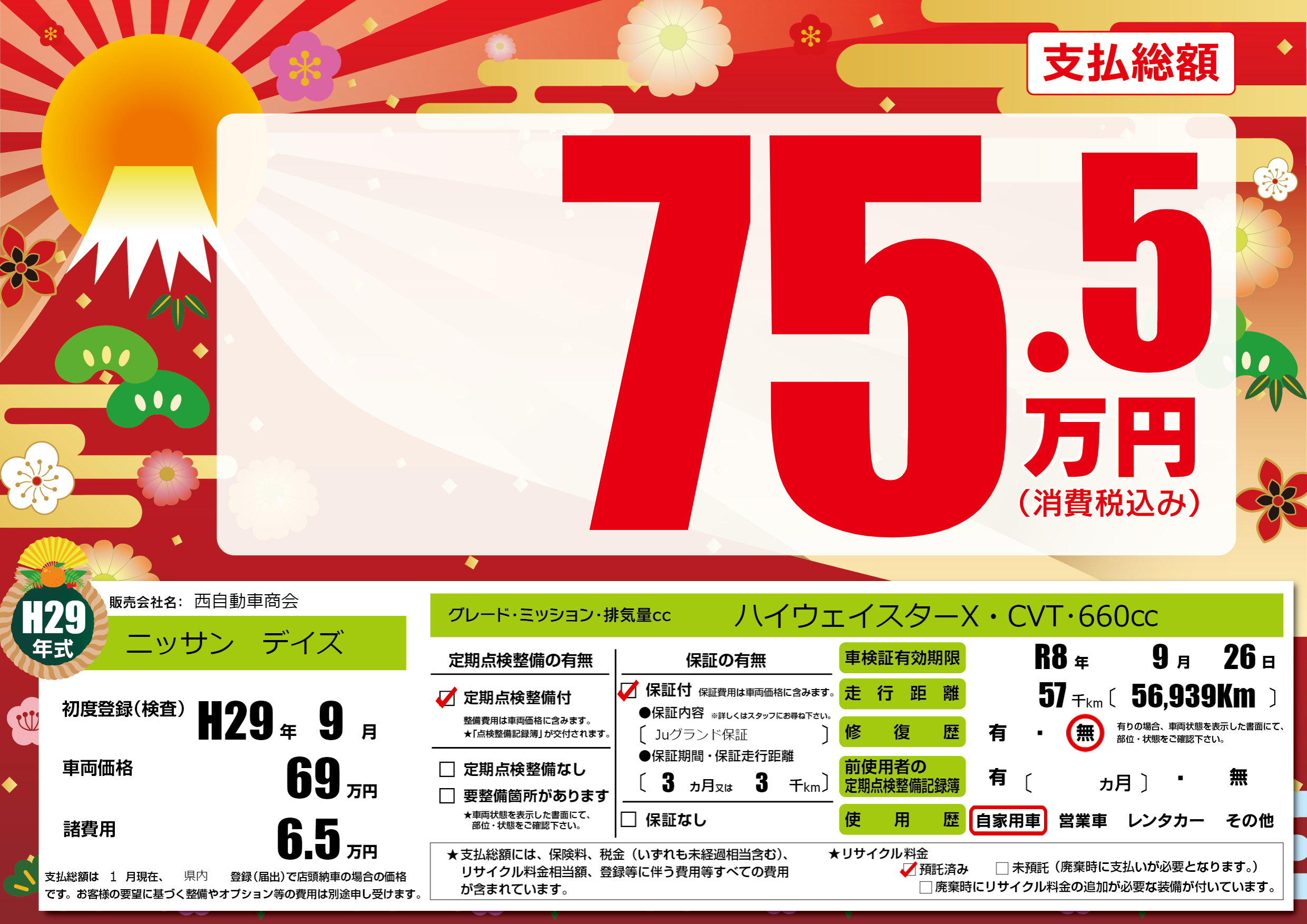 | 車名 | ニッサン デイズ | グレード ミッション 排気量 |