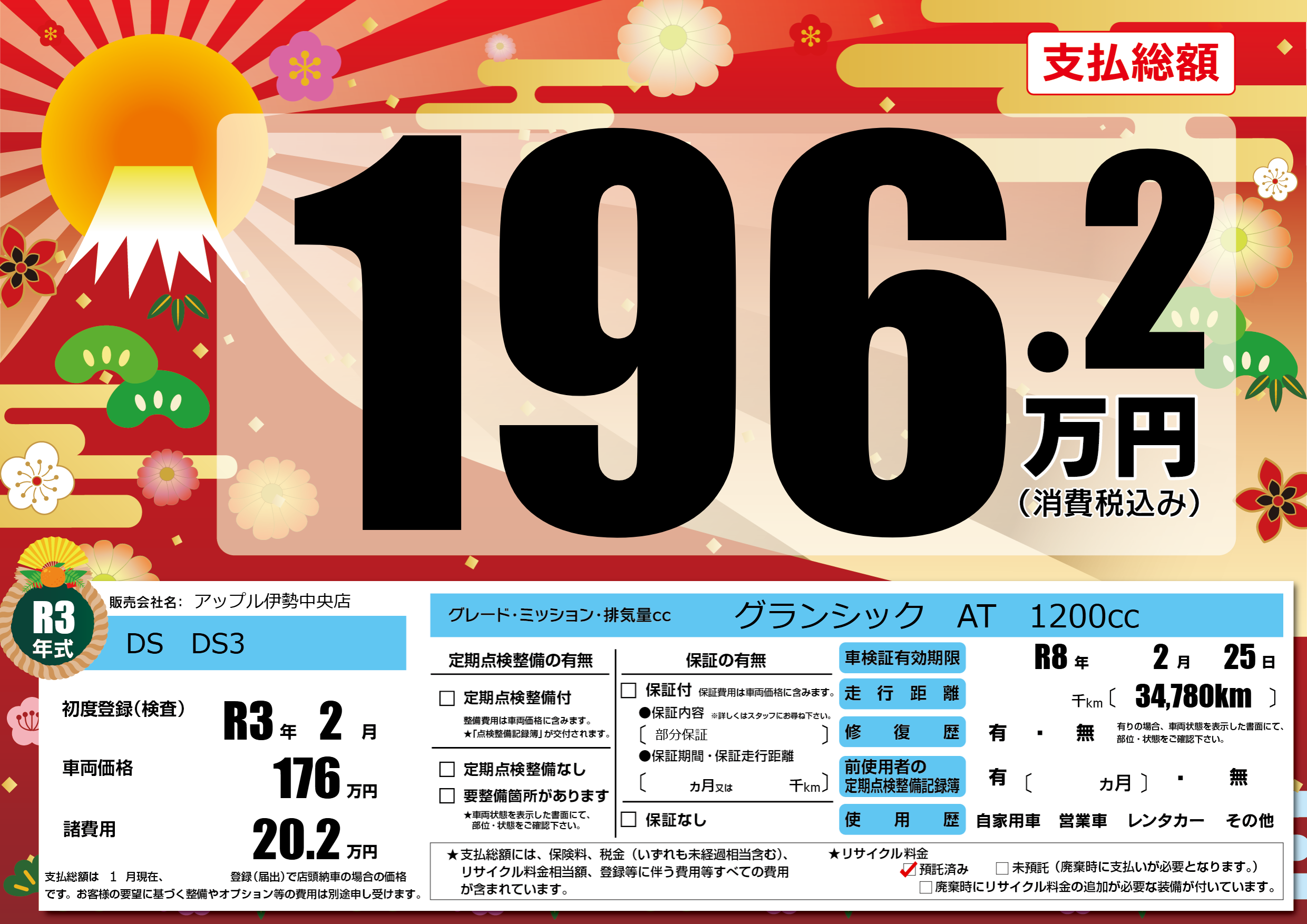 | 車名 | DS DS3 | グレード ミッション 排気量 |