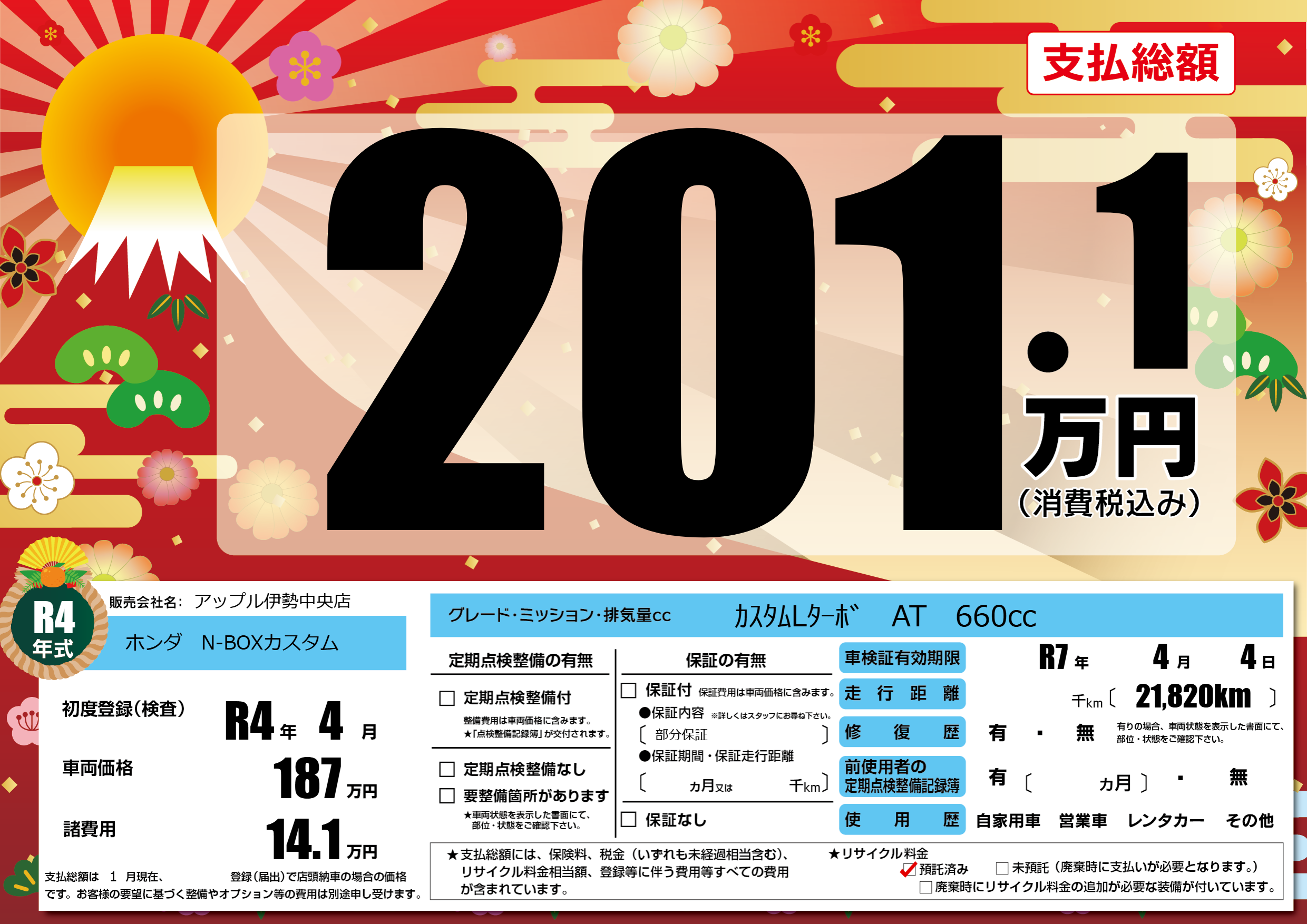 なし | 車検制限 | R7年4月4月 |
