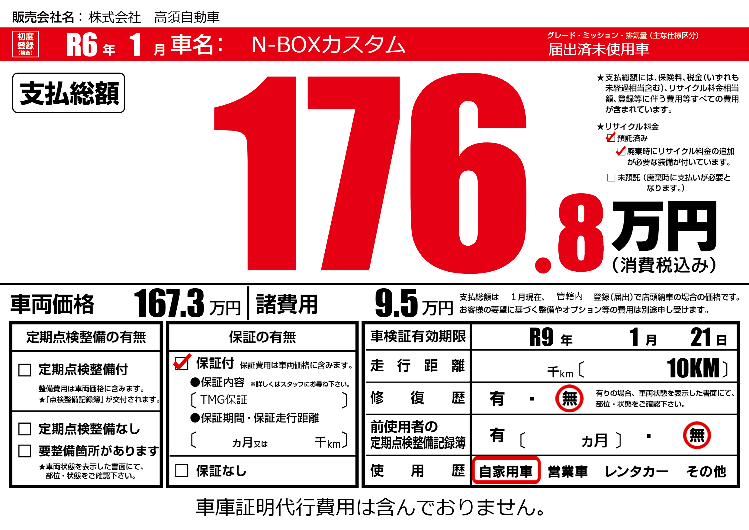 保証付き 保証内容(TMG保証) ---ヶ月または()千kmまで |