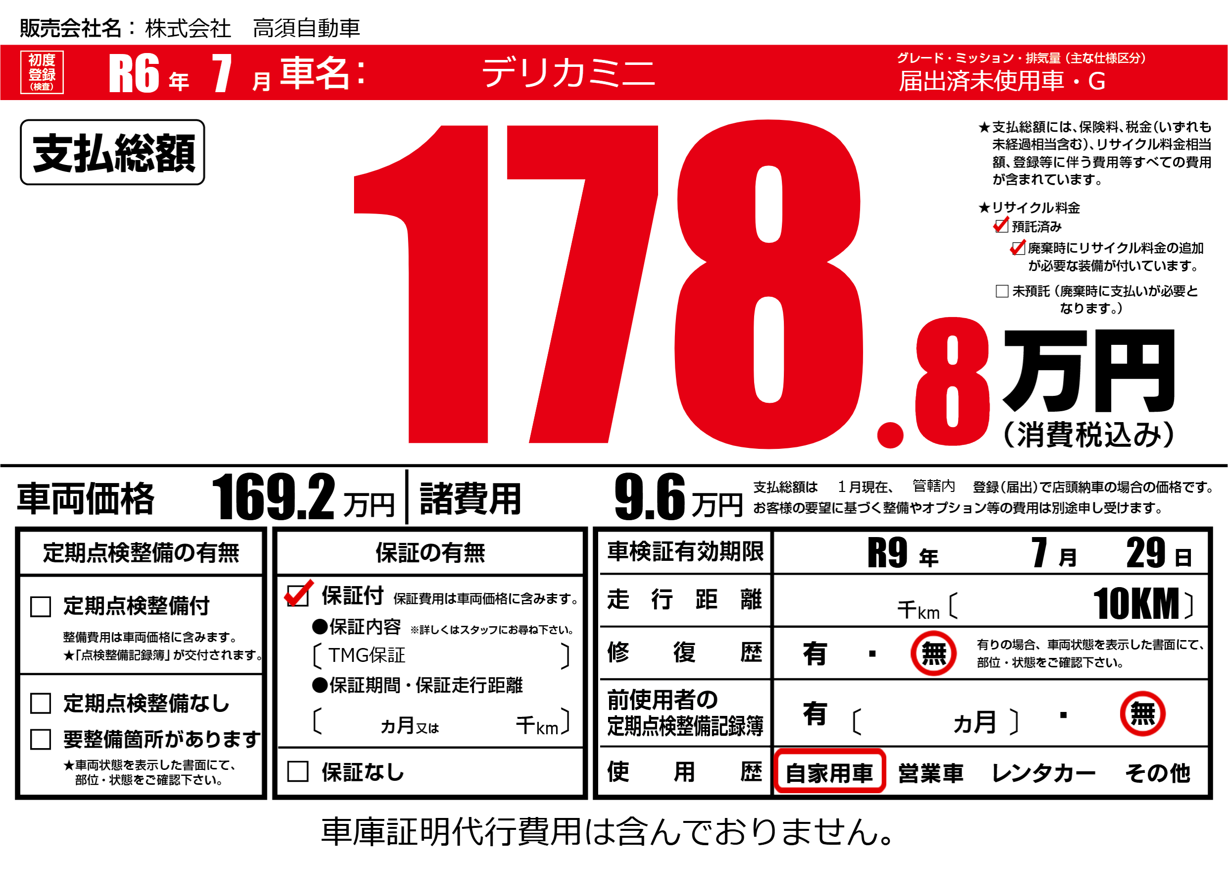 | 車名 | デリカミニ | グレード ミッション 排気量 |