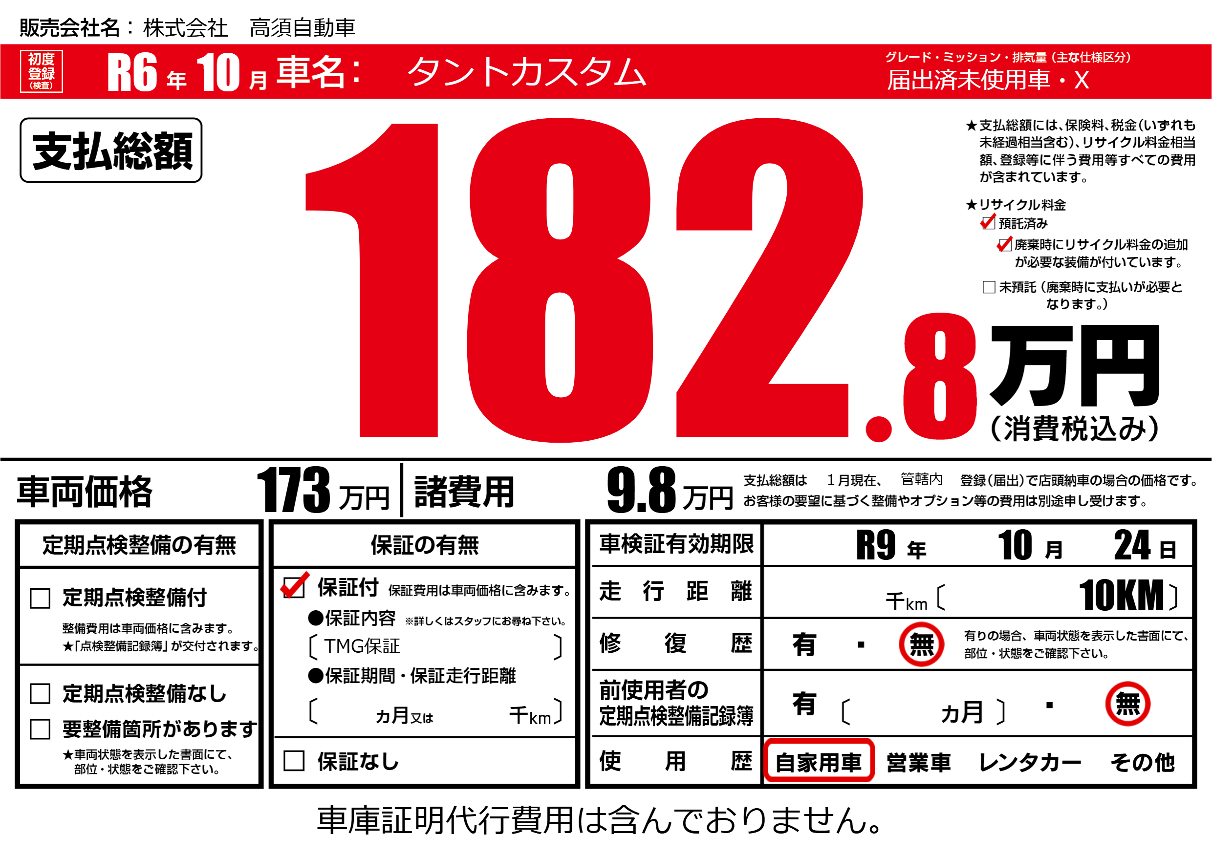 なし | 車検制限 | R9年10月24月 |