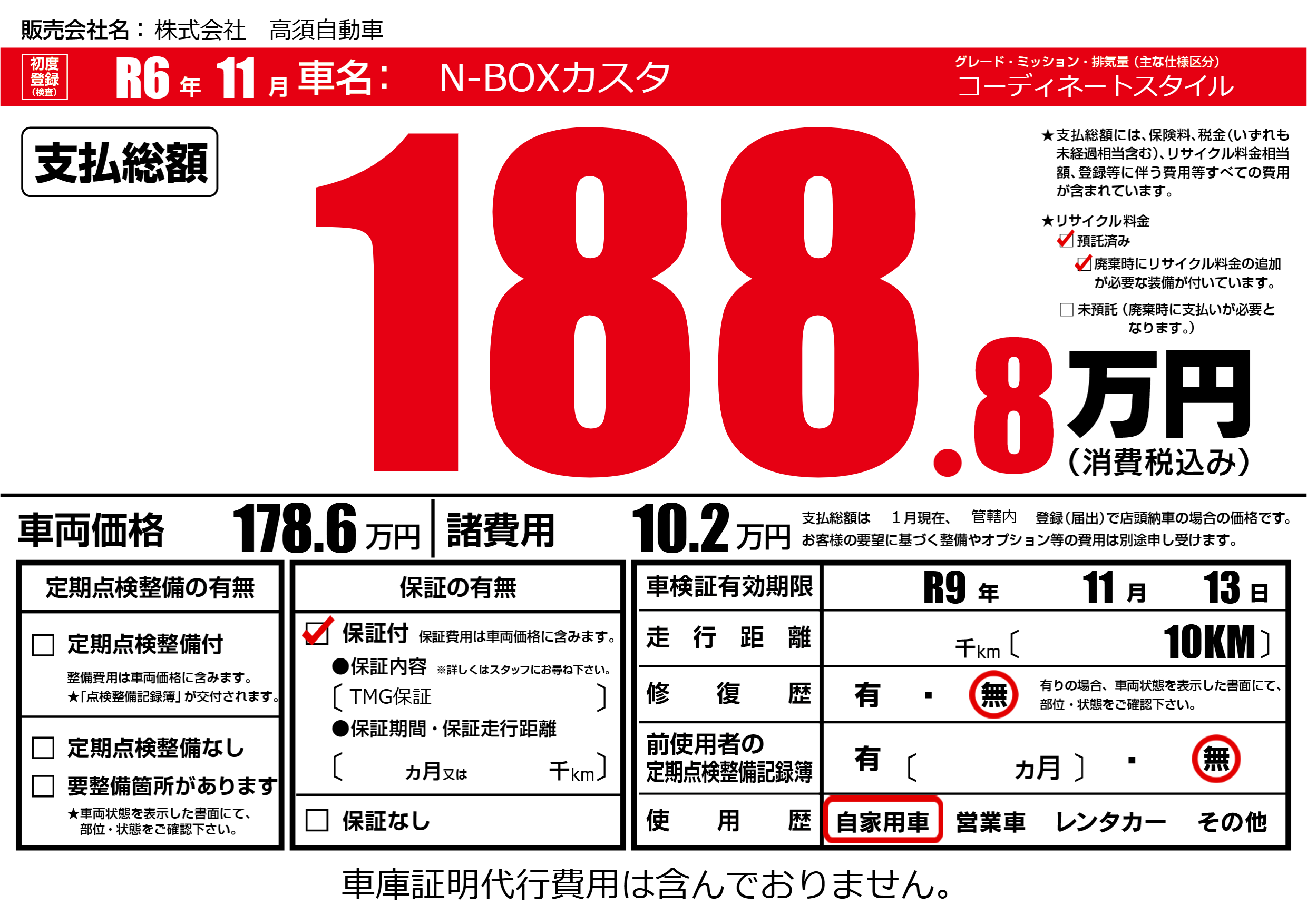 保証付き 保証内容(TMG保証) ---ヶ月または()千kmまで |