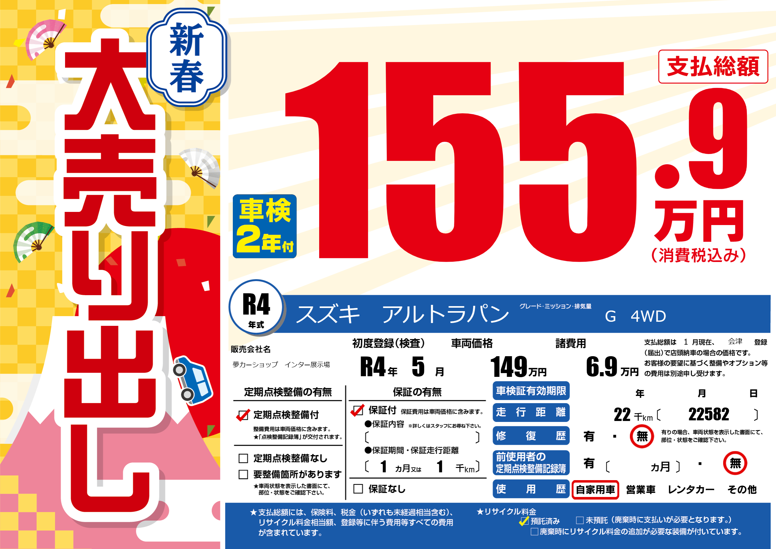 | 走行キロ | 2.2万km | 初年度登録 | R4年5月 |