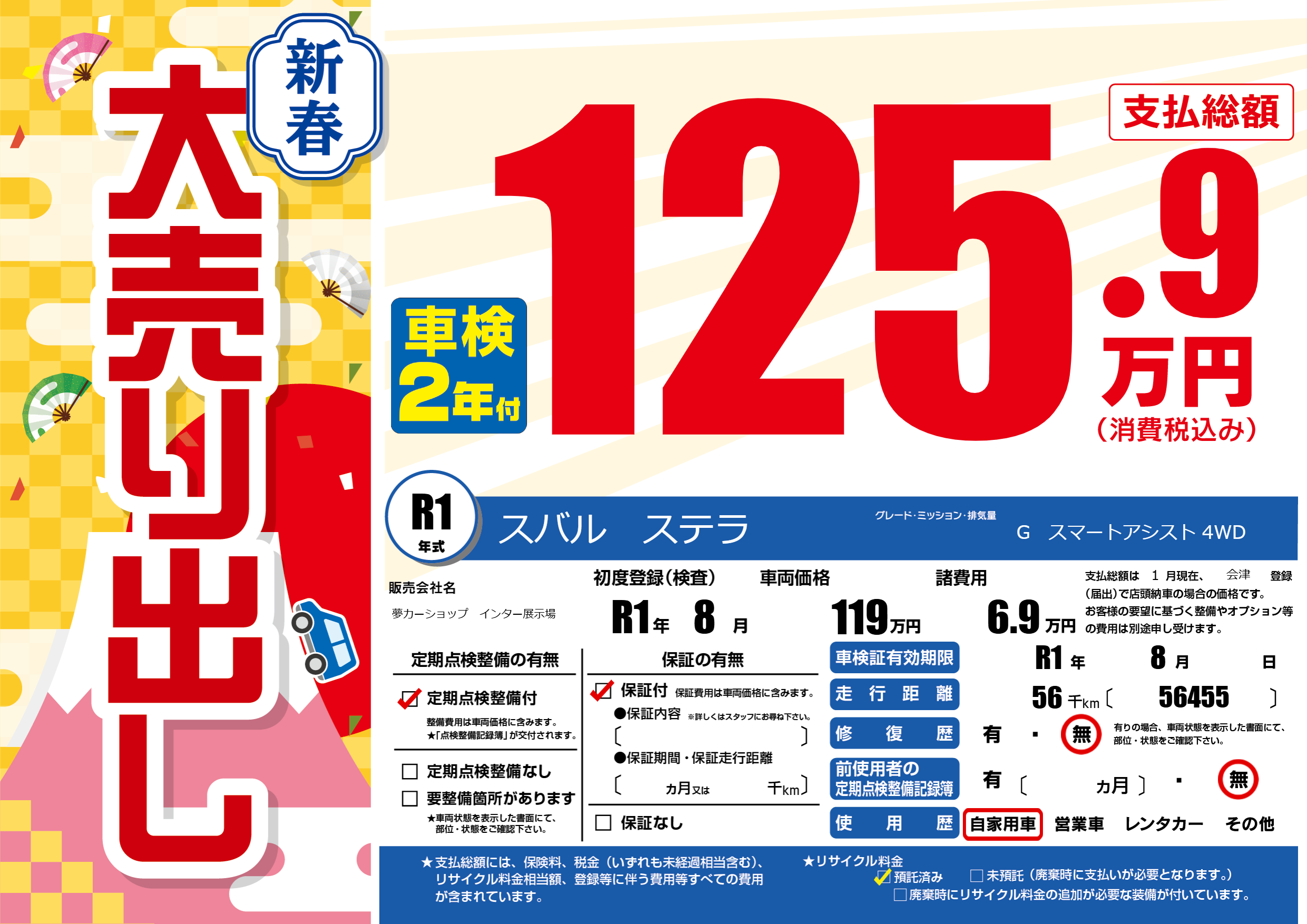 | 車名 | スバル ステラ | グレード ミッション 排気量 |