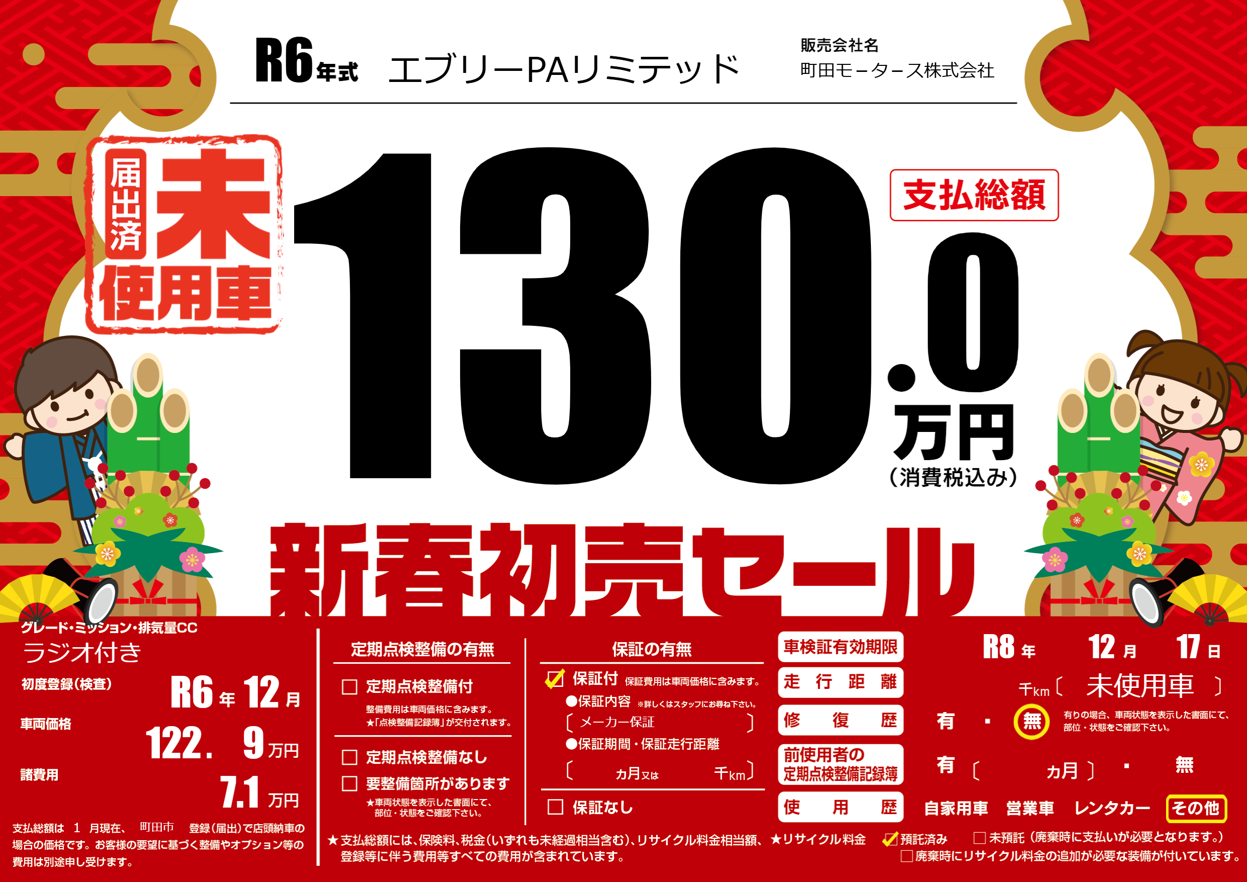 | 車名 | エブリーPAリミテッド | グレード ミッション 排気量 |