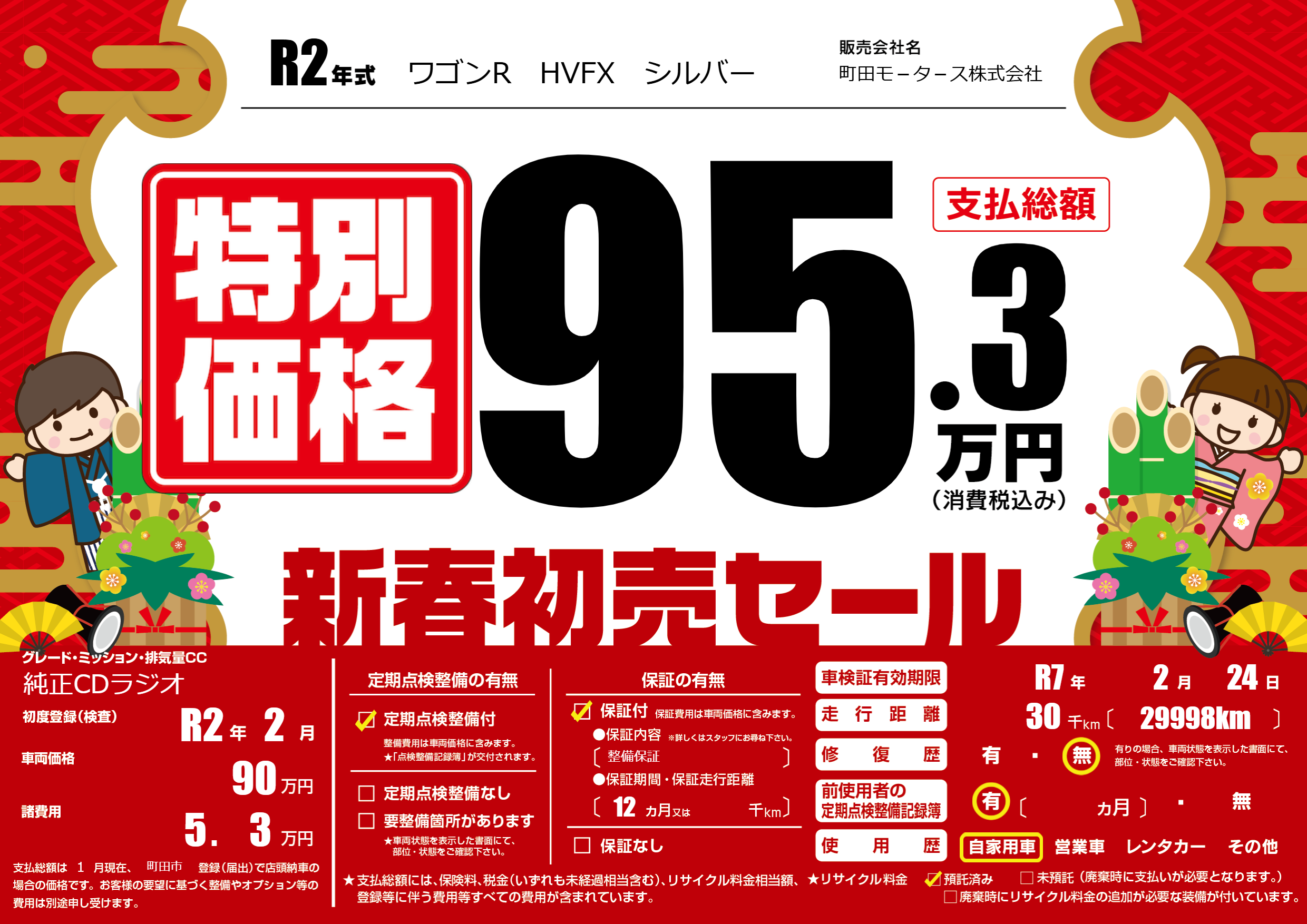 保証付き 保証内容(整備保証) 12ヶ月または千km |