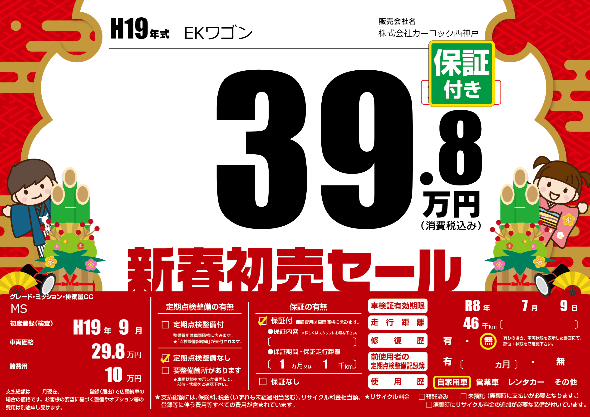 | 車名 | EKワゴン | グレード ミッション 排気量 |