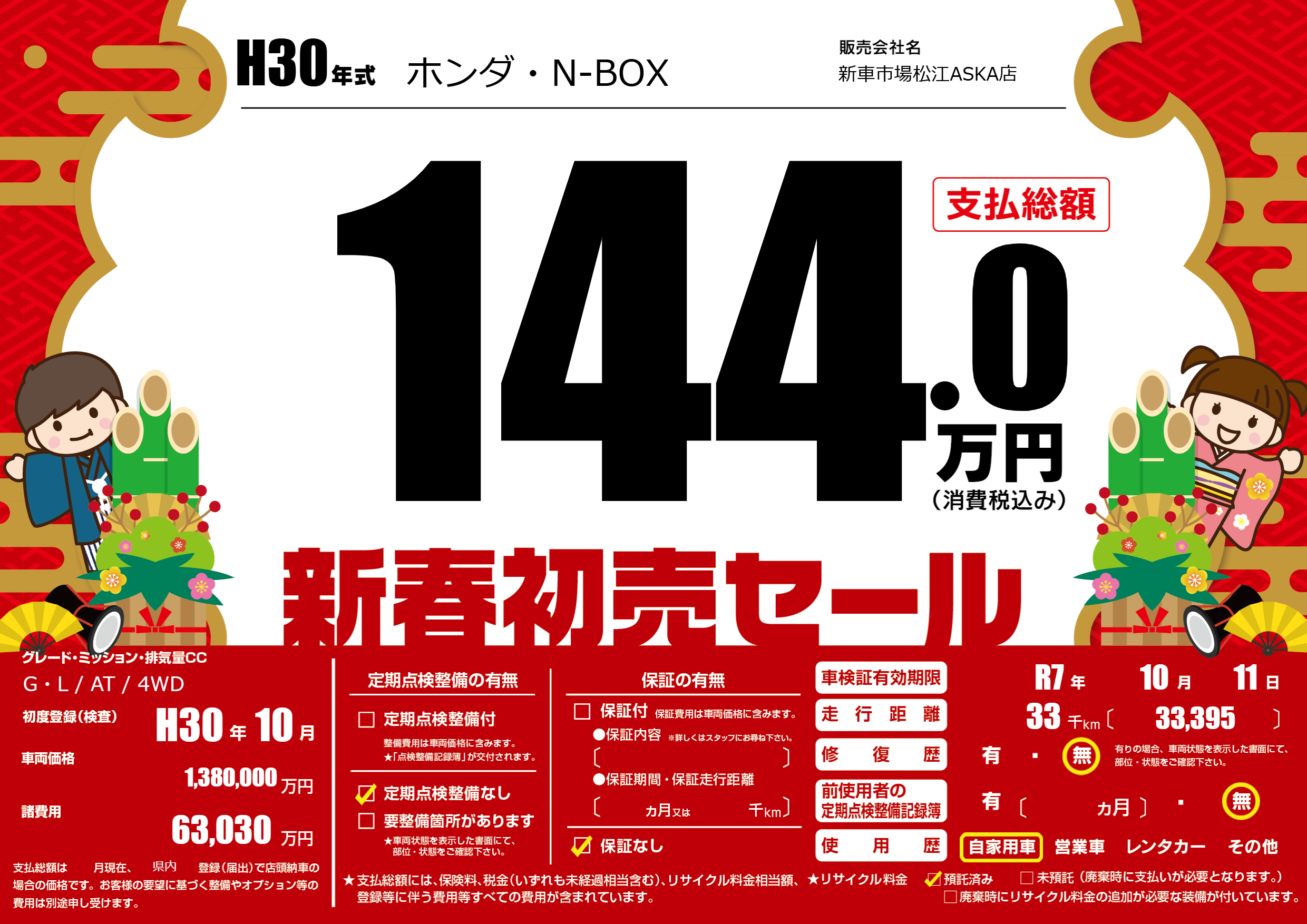 なし | 車検制限 | R7年10月11月 |