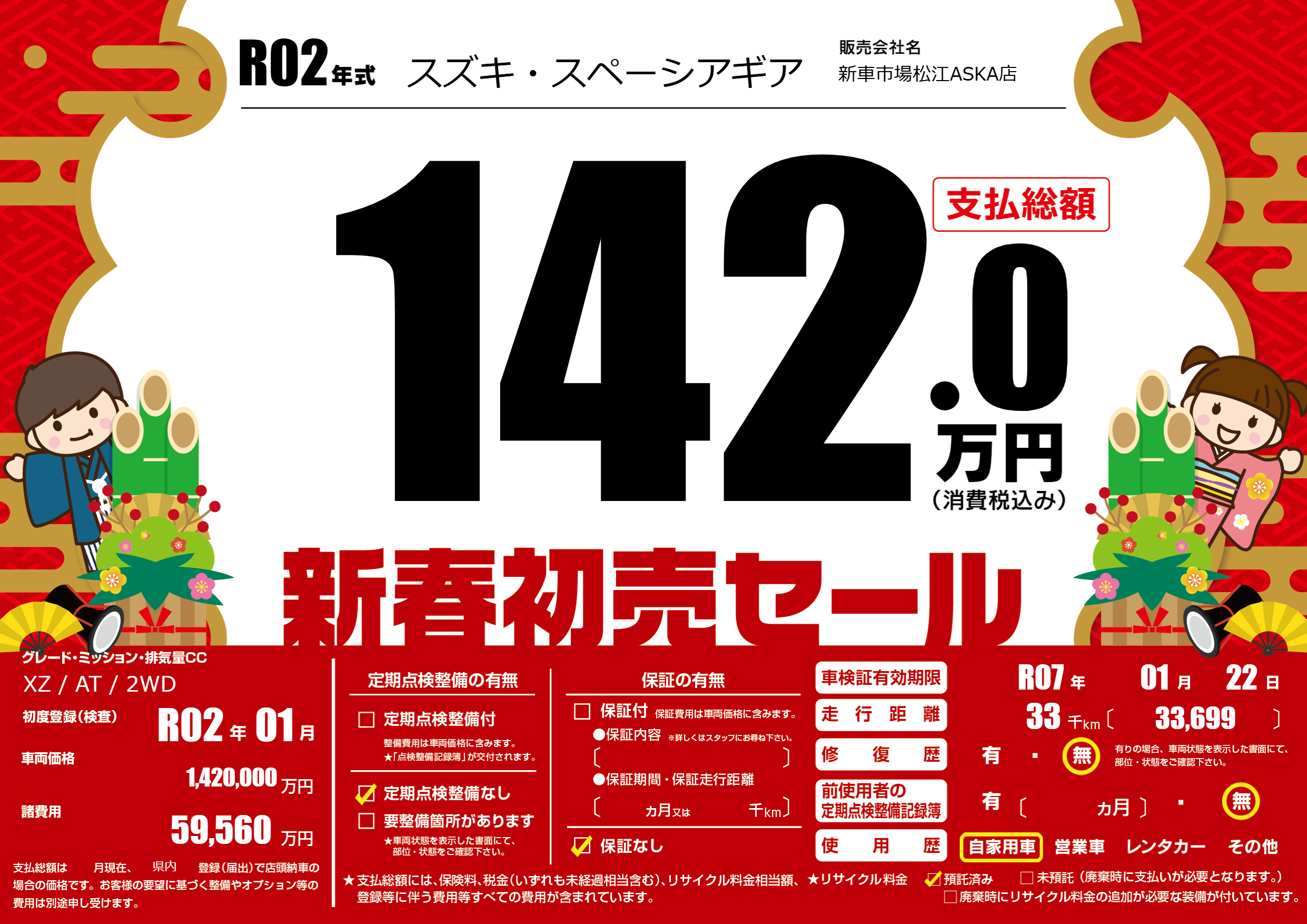 | 初年度登録 | R02年01月 | ||
