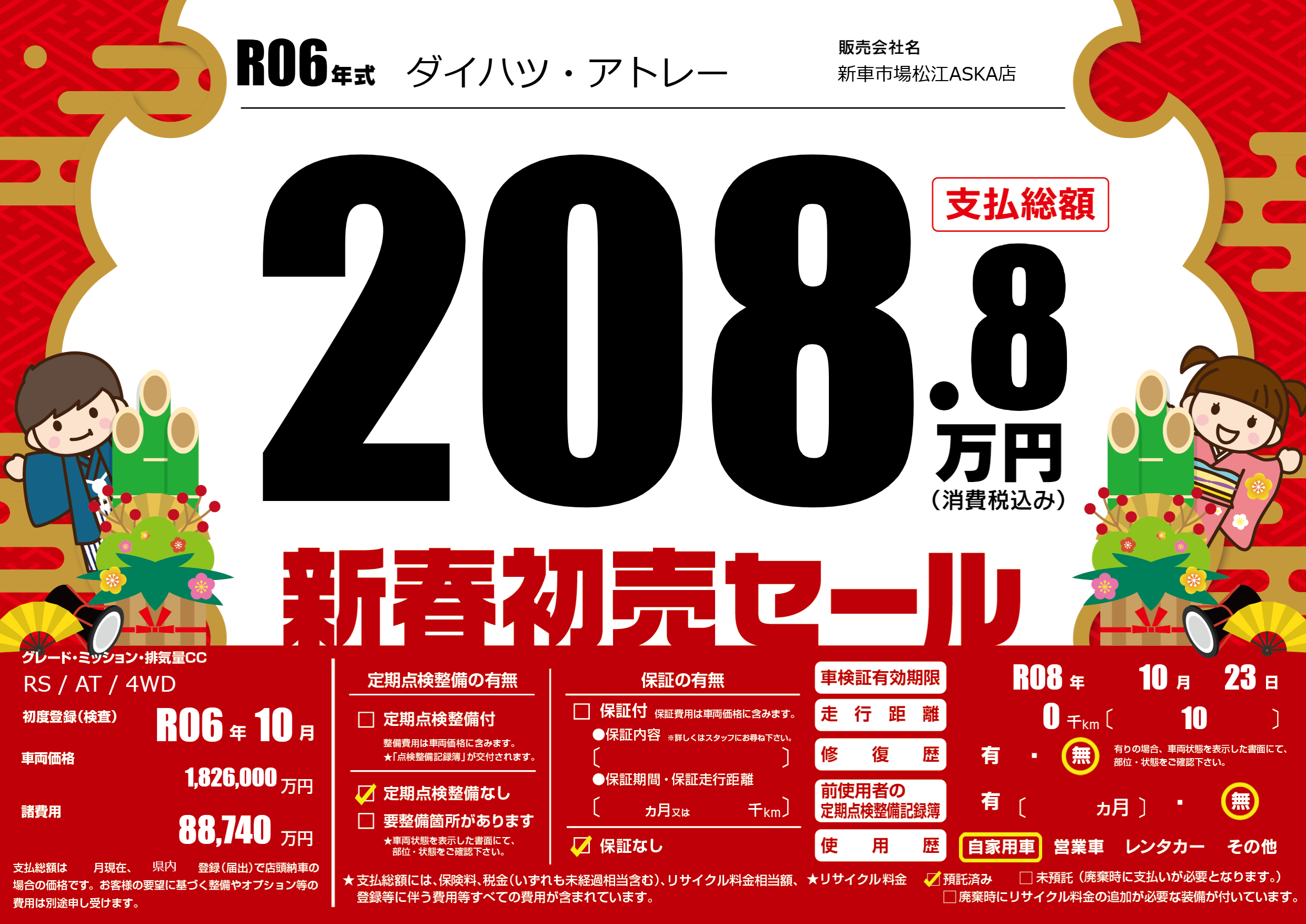 | 走行キロ | - | 初年度登録 | R06年10月 |