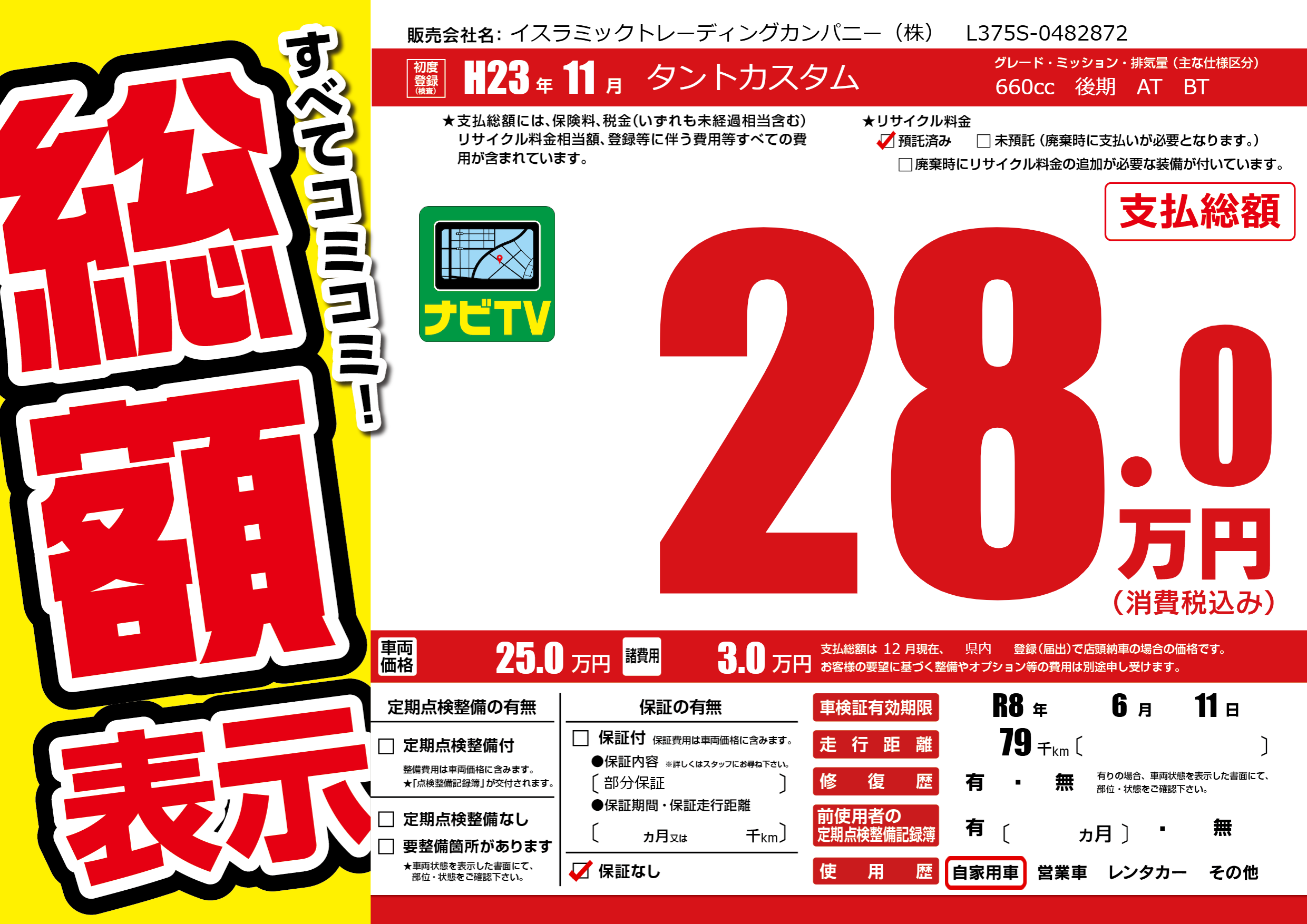 | 車検制限 | R8年 6月 11日 | ||