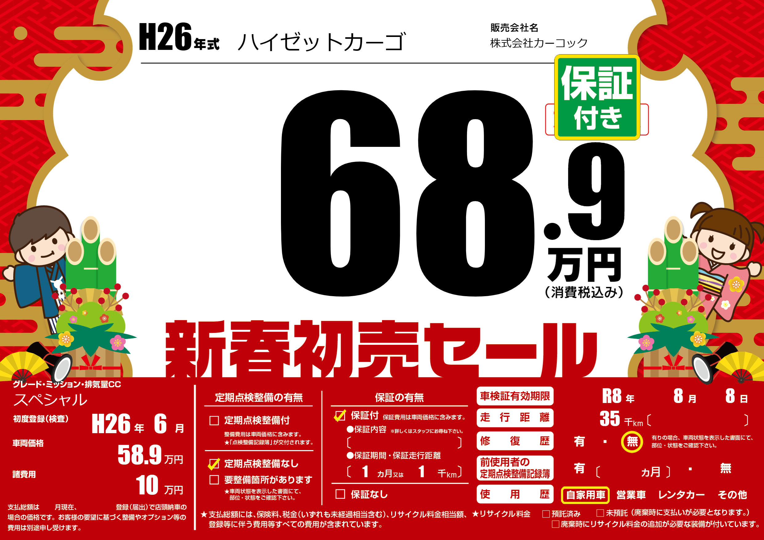 | 車名 | ハイゼットカーゴ | グレード ミッション 排気量 |