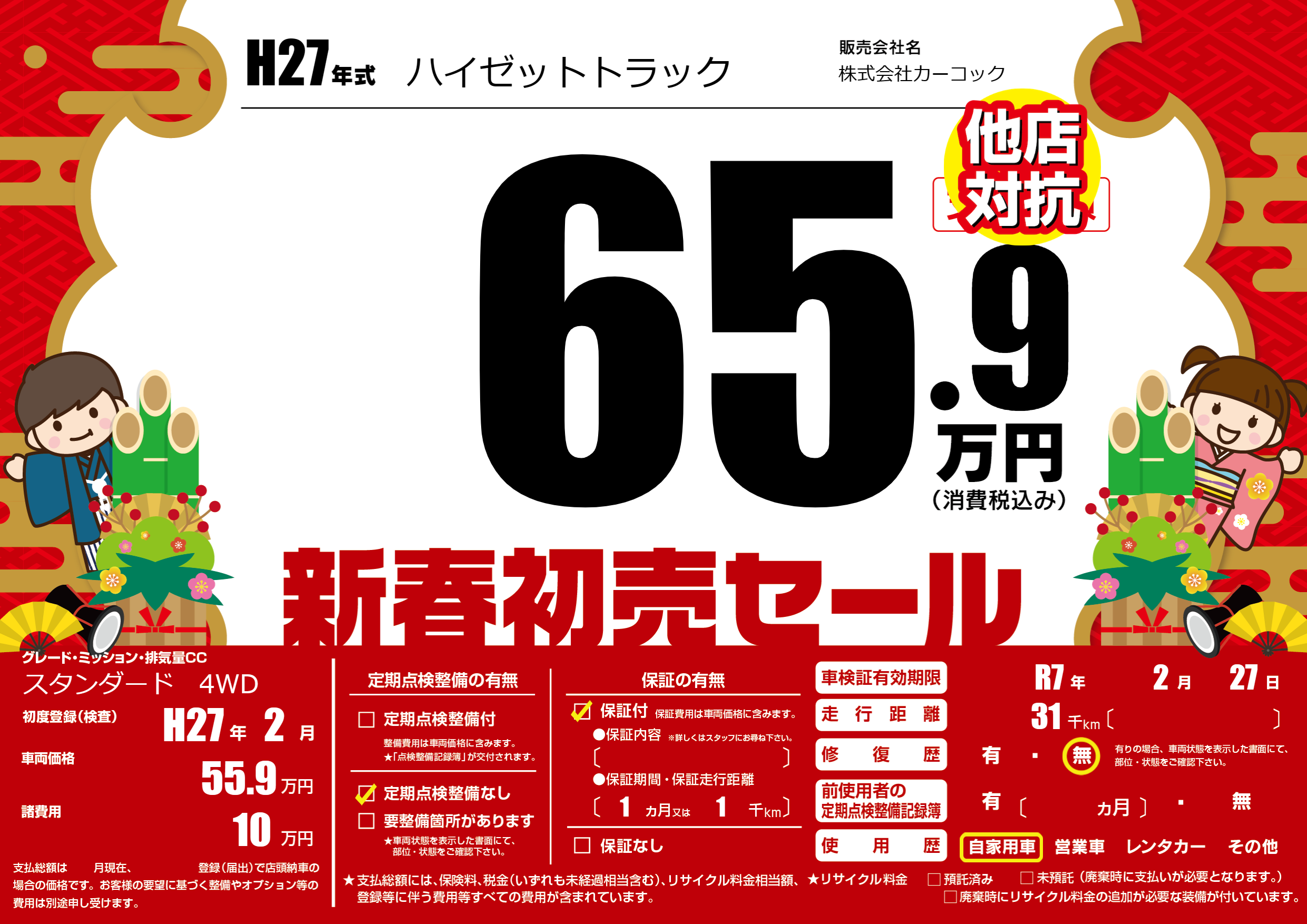 | 車名 | ハイゼットトラック | グレード ミッション 排気量 |
