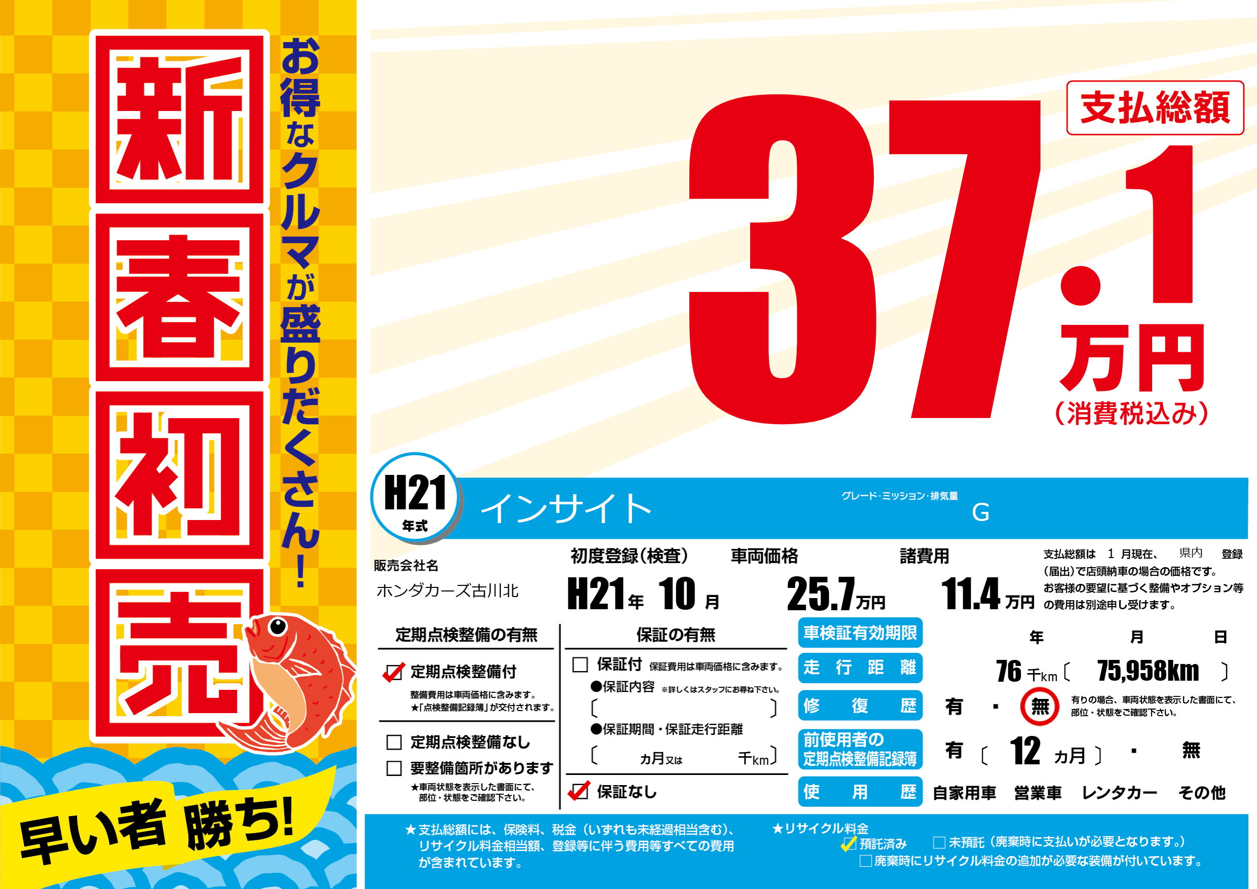 | 車名 | インサイト | グレード ミッション 排気量 |