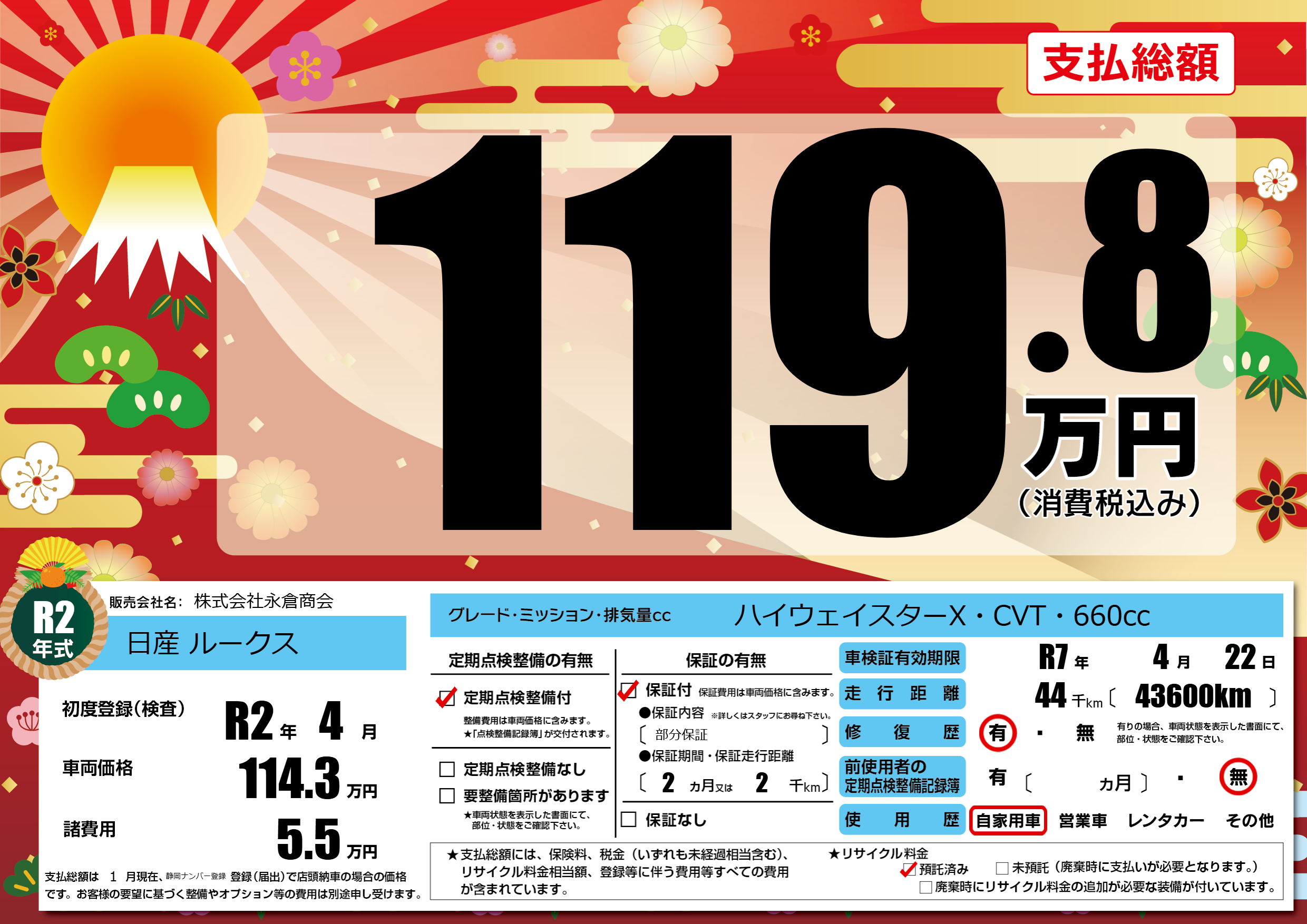 | 車検制限 | R7年 4月 22日 | ||