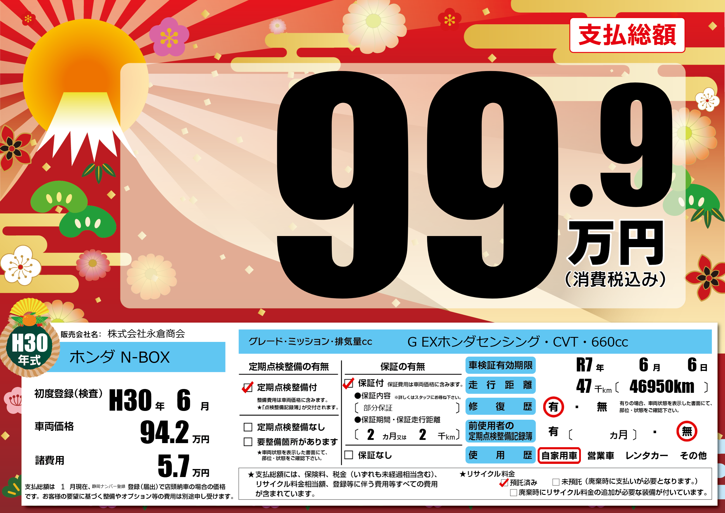 | 車名 | ホンダ N-BOX | グレード ミッション 排気量 |