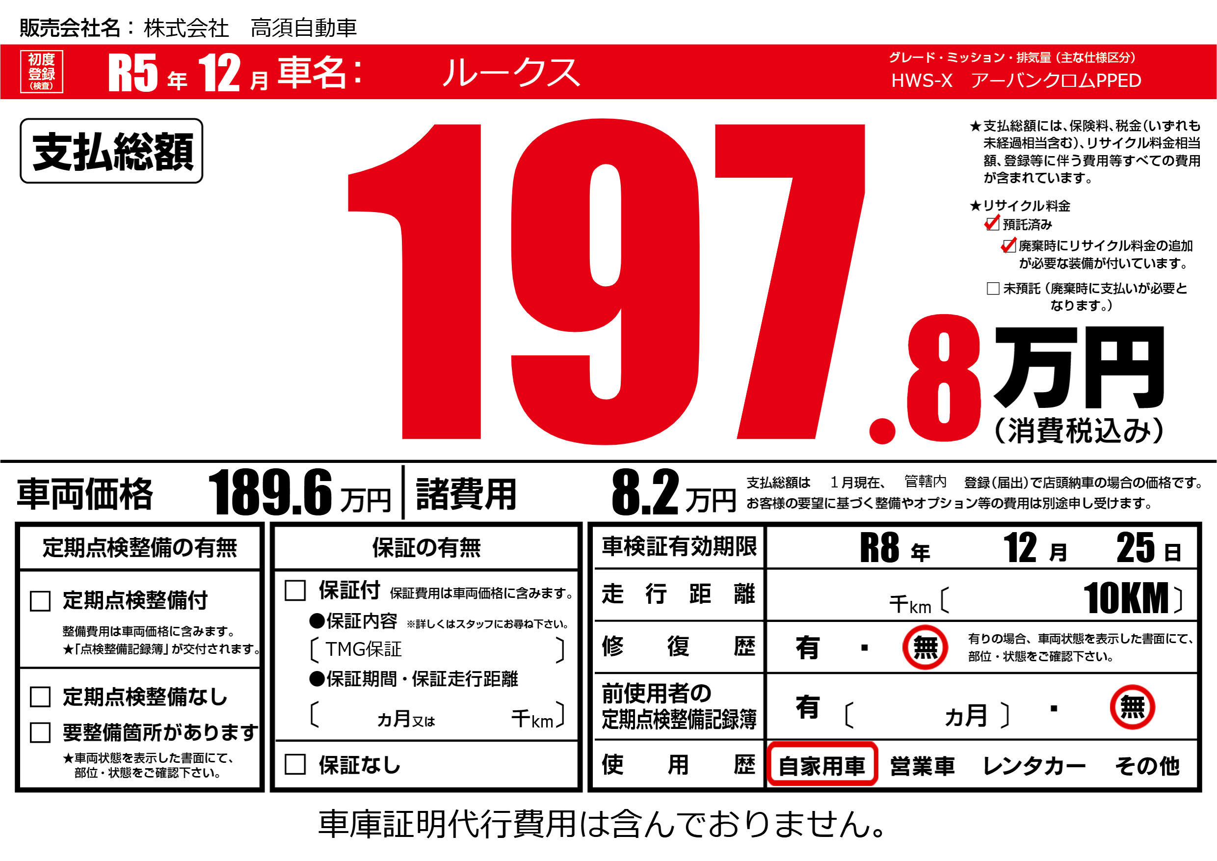 | 走行キロ | - | 初年度登録 | R5年12月 |