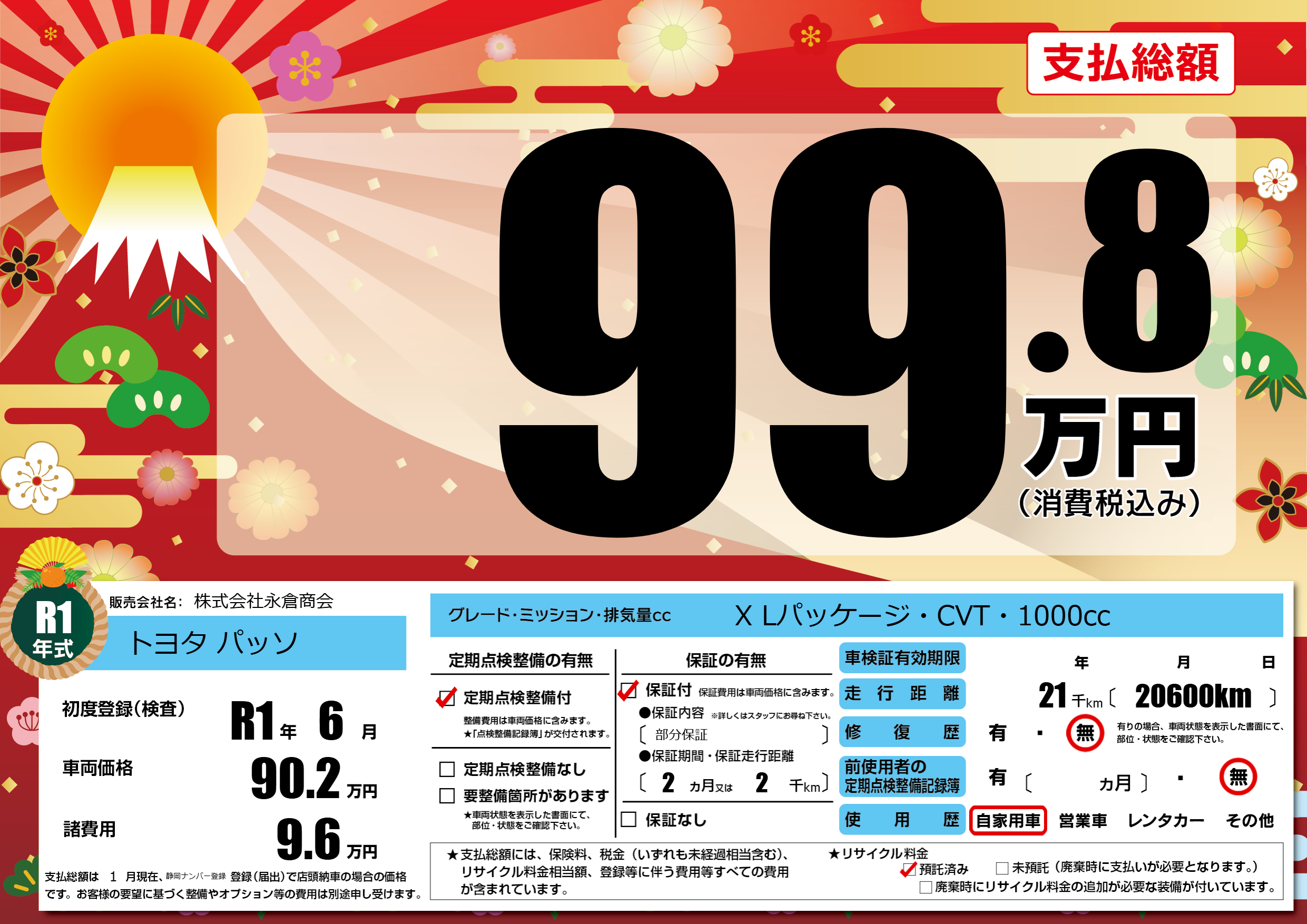 | 車名 | トヨタ パッソ | グレード ミッション 排気量 |