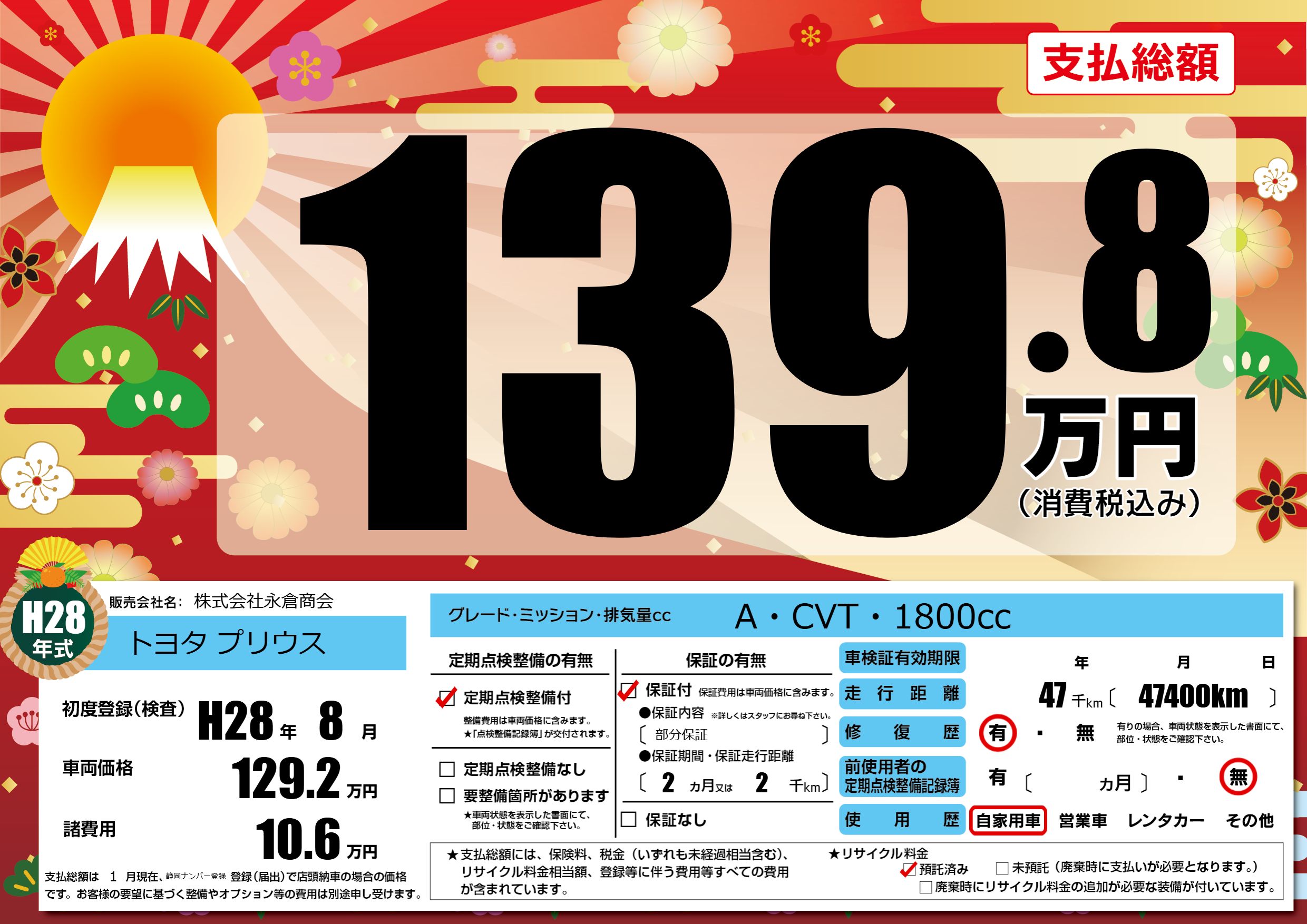 初年度登録 H28年8月