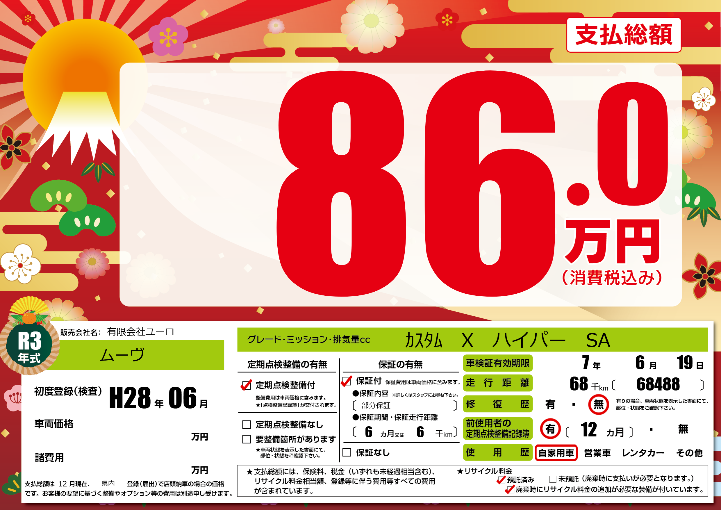 | 車名 | ムーヴ | グレード ミッション 排気量 |