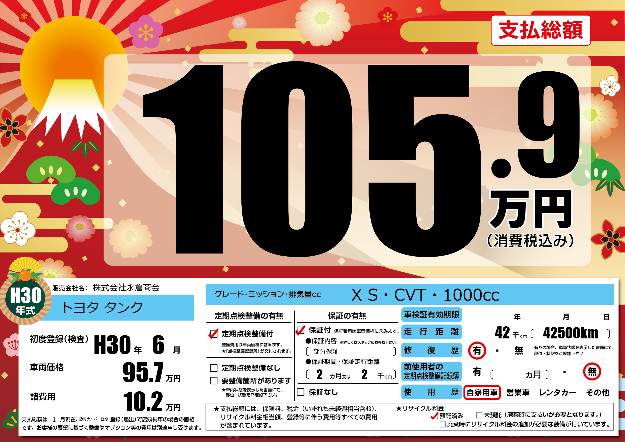 | 初年度登録 | H30年6月 | ||