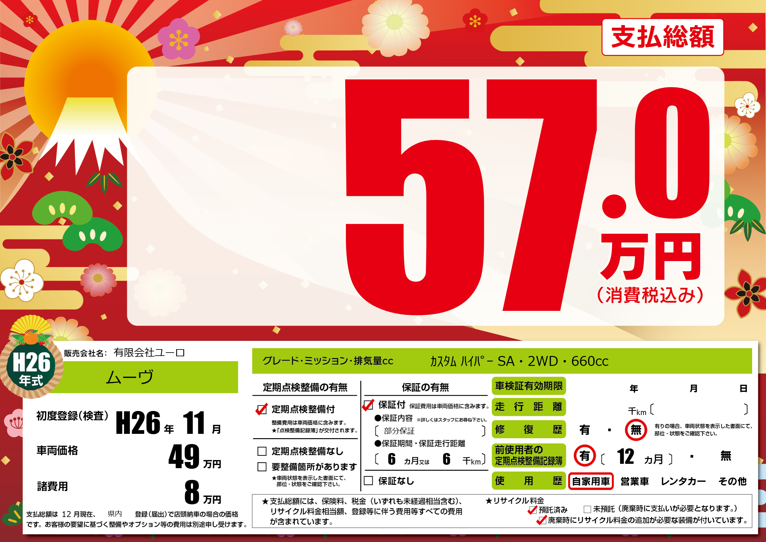 | 走行キロ | - | 初年度登録 | H26年11月 |