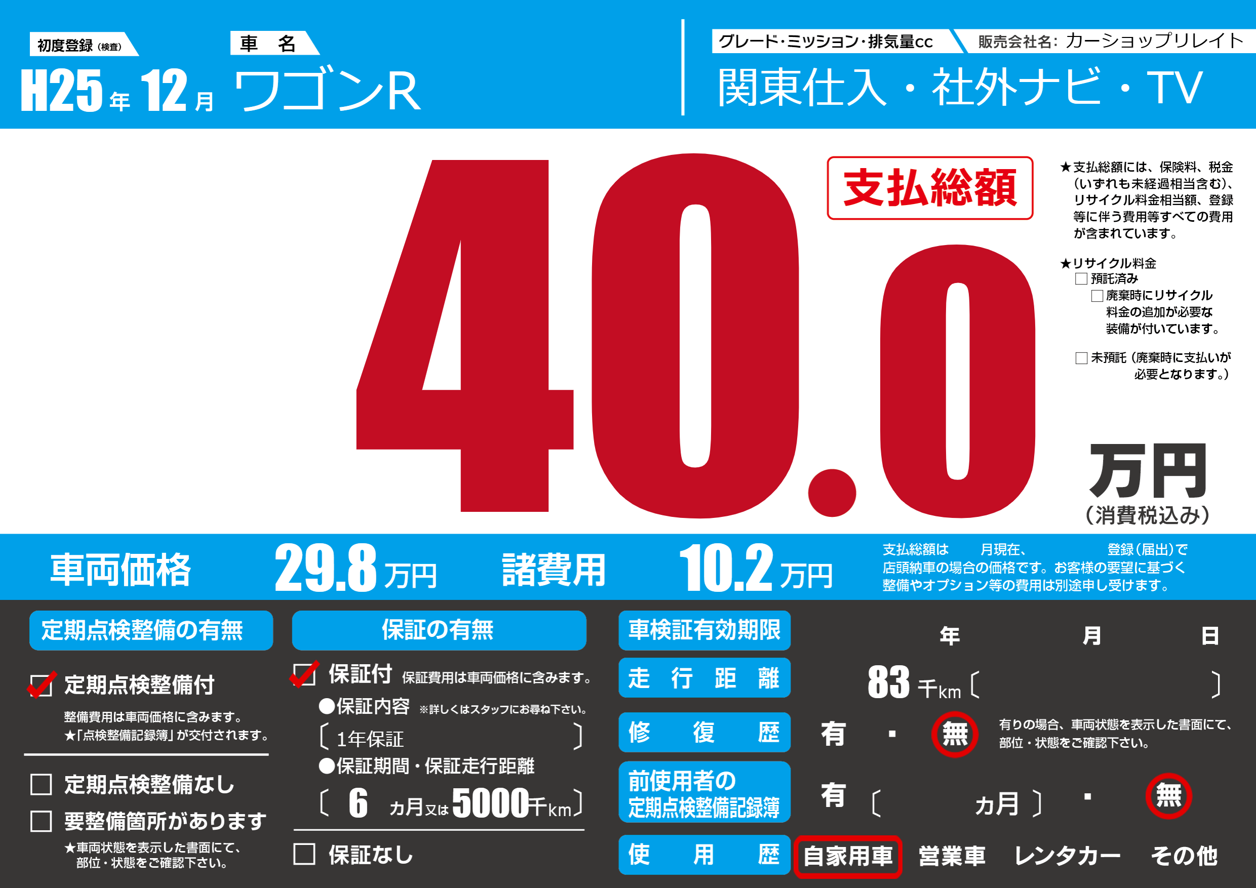 | 車検制限 | - 年 - 月 - 日 | ||