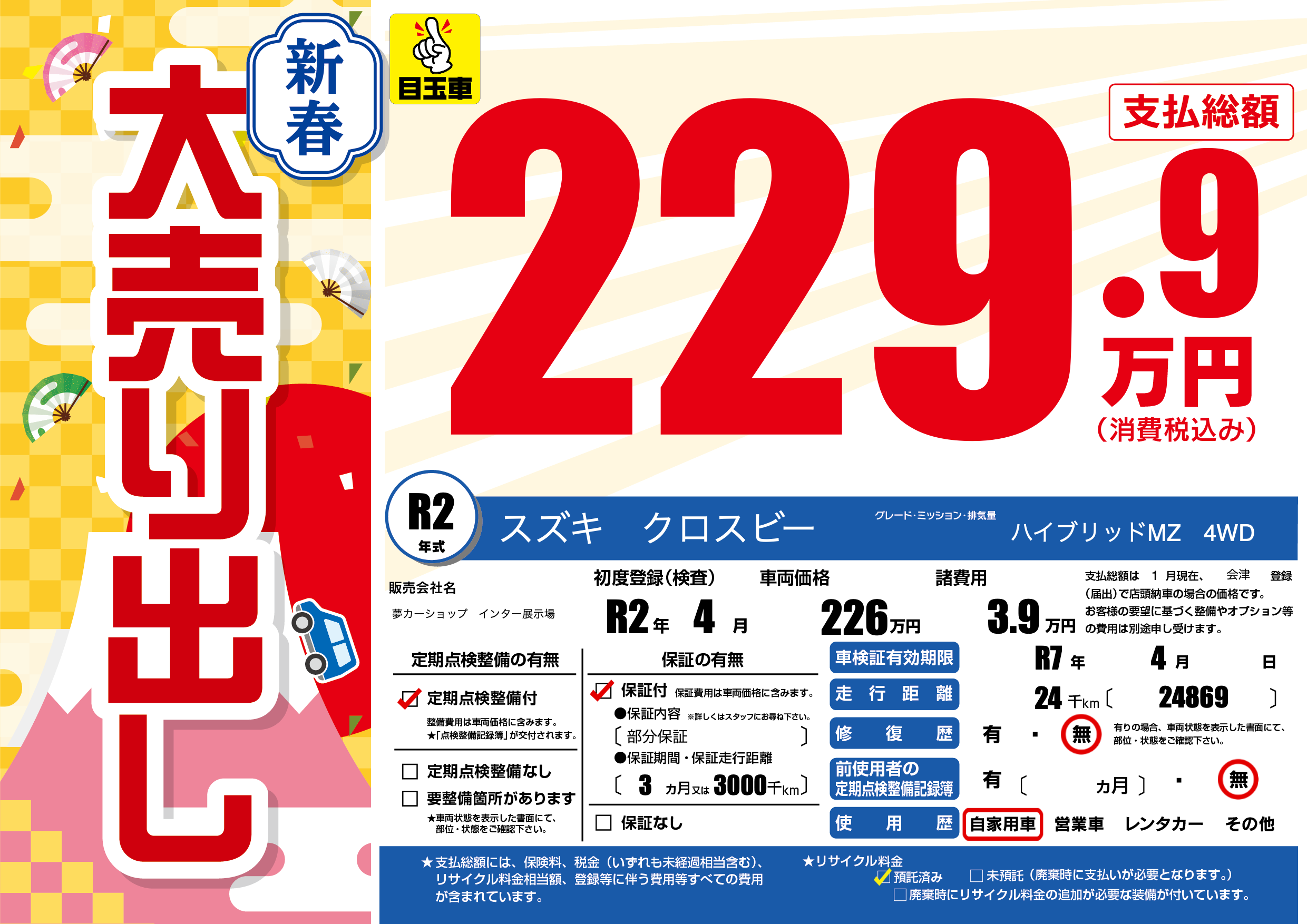 | 走行キロ | 2.4万km | 初年度登録 | R2年4月 |