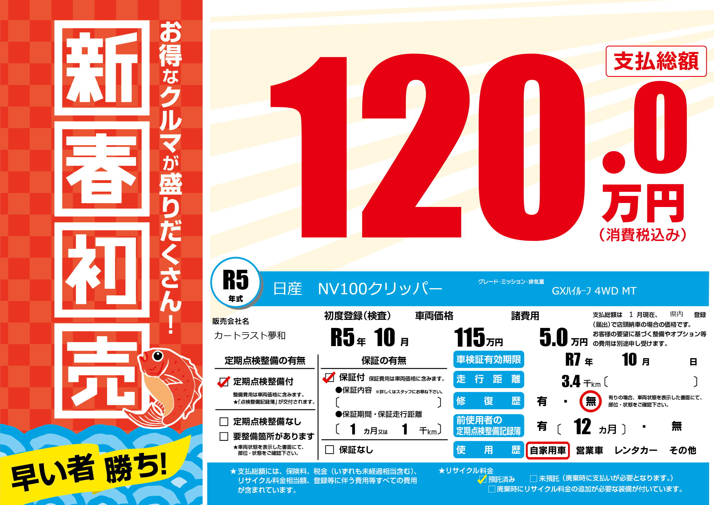 | 走行キロ | 0.3万km | 初年度登録 | R5年10月 |