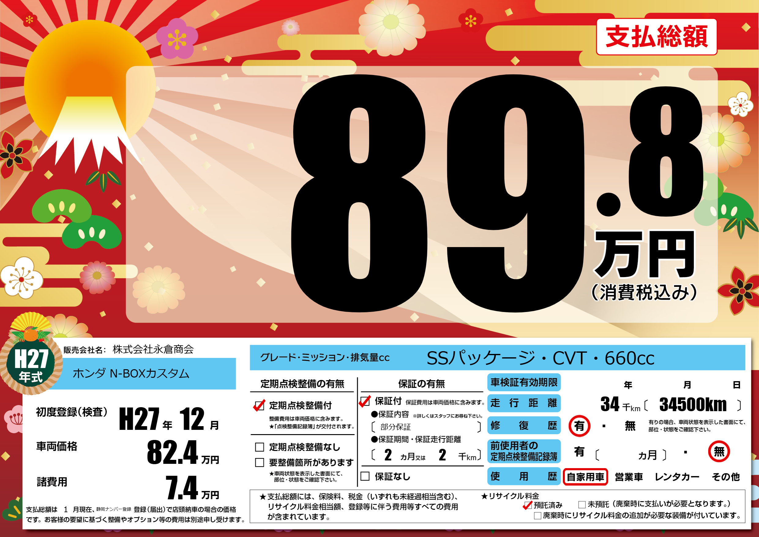 | 車名 | ホンダ N-BOXカスタム | グレード ミッション 排気量 |