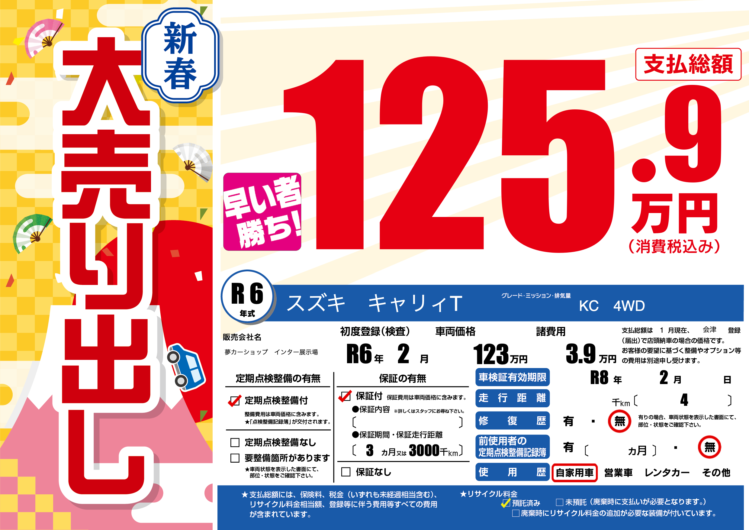 | 走行キロ | - | 初年度登録 | R6年2月 |