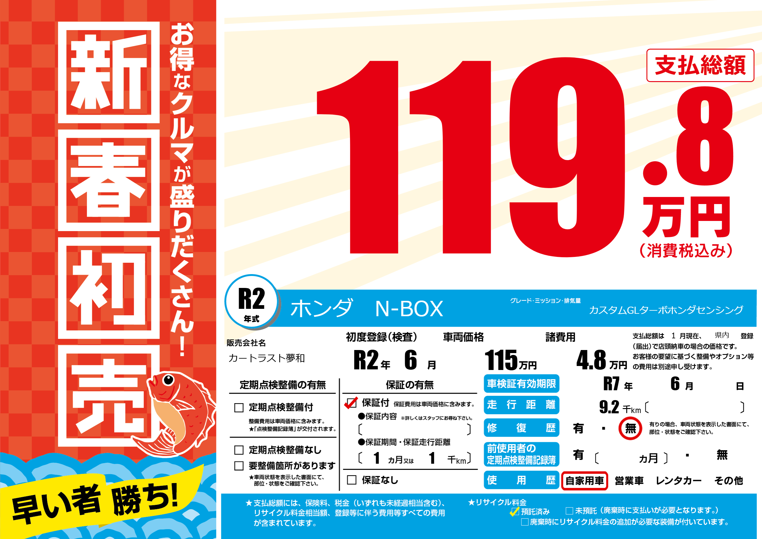 | 車検制限 | R7年 6月 - 日 | ||
