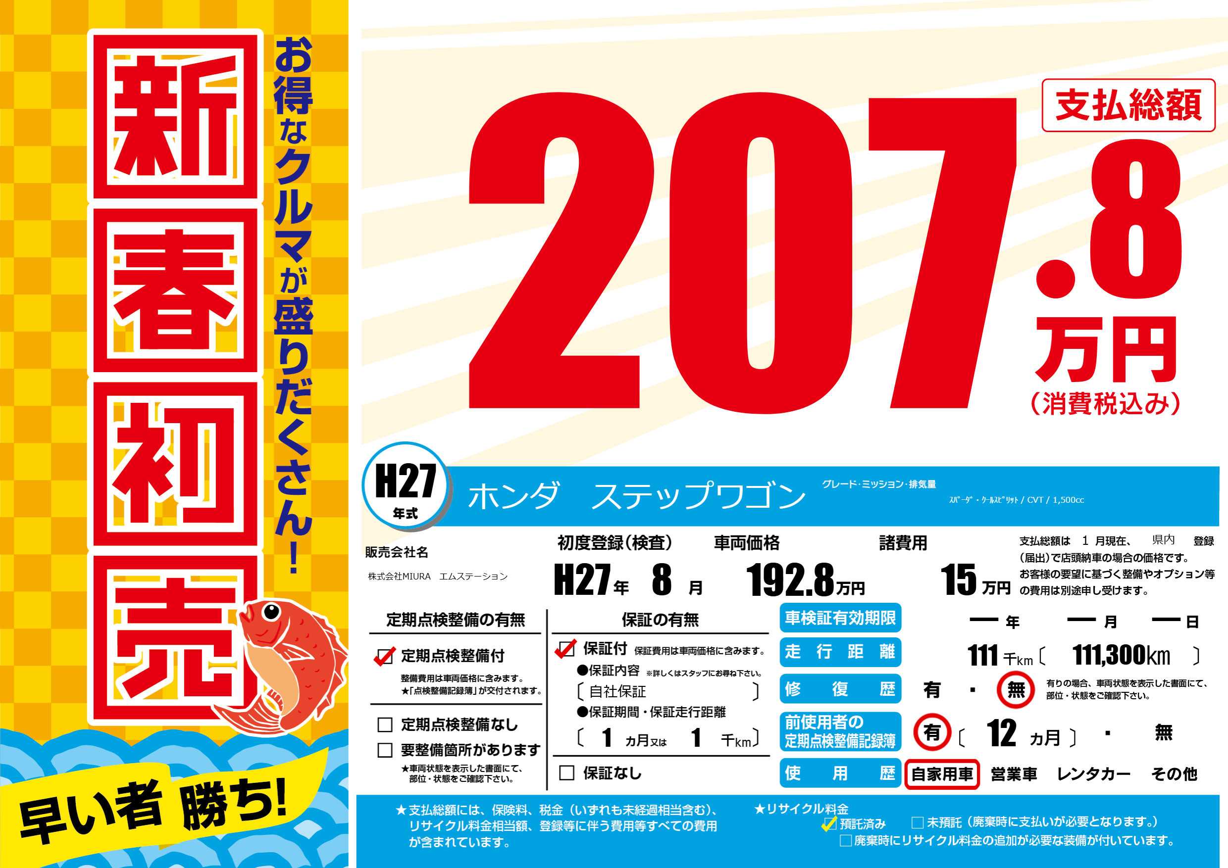 | 車名 | ホンダ ステップワゴン | グレード ミッション 排気量 |
