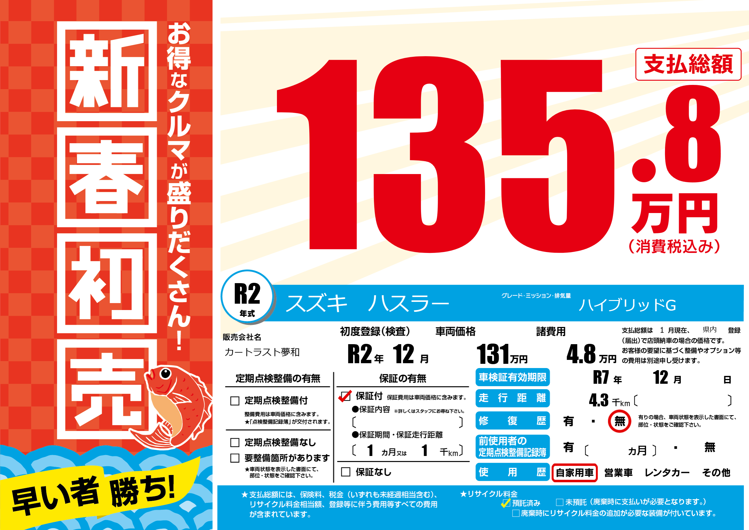 | 車検制限 | R7年 12月 - 日 | ||
