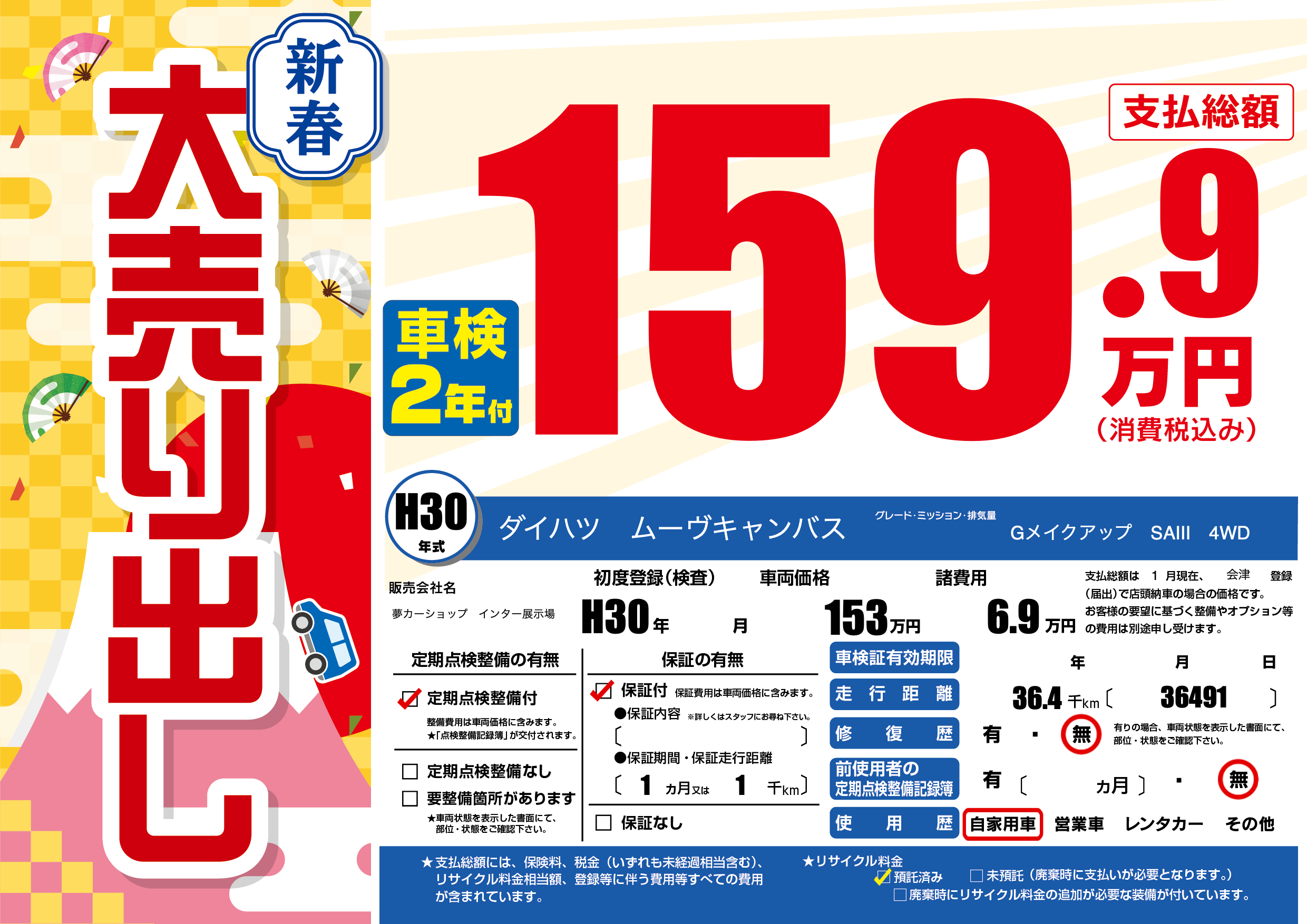 | 走行キロ | 3.6万km | 初年度登録 | H30年---月 |