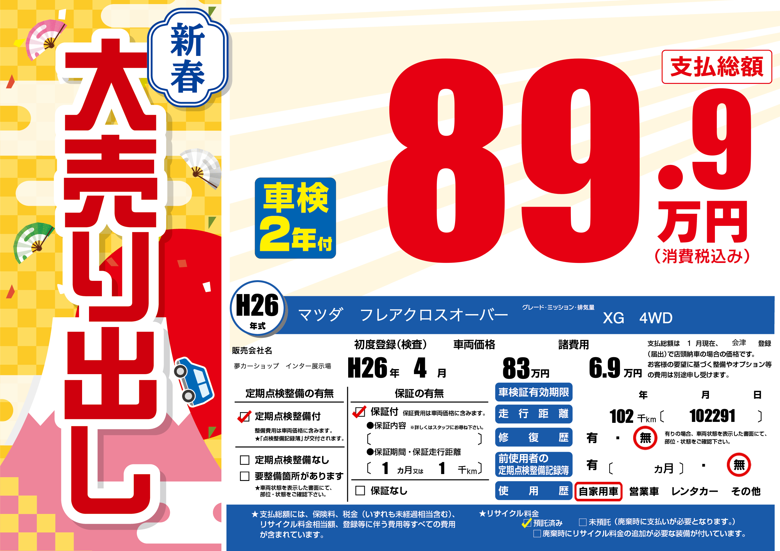 | 車名 | マツダ フレアクロスオーバー | グレード ミッション 排気量 |