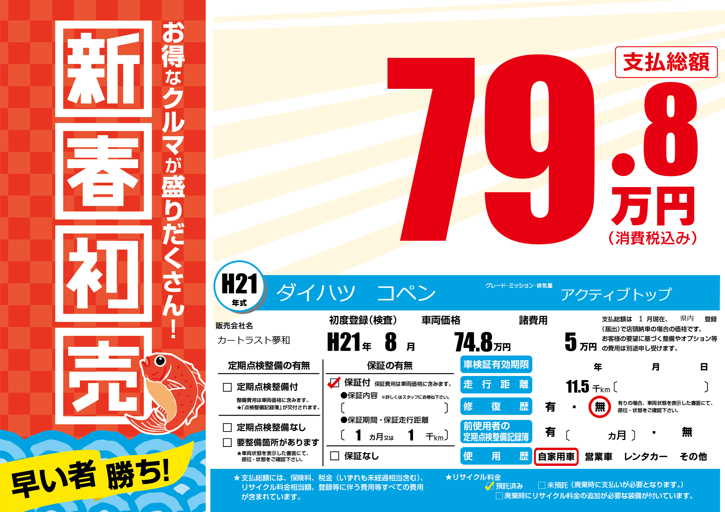 保証付き 保証内容(---) 1ヶ月または(1)千kmまで |