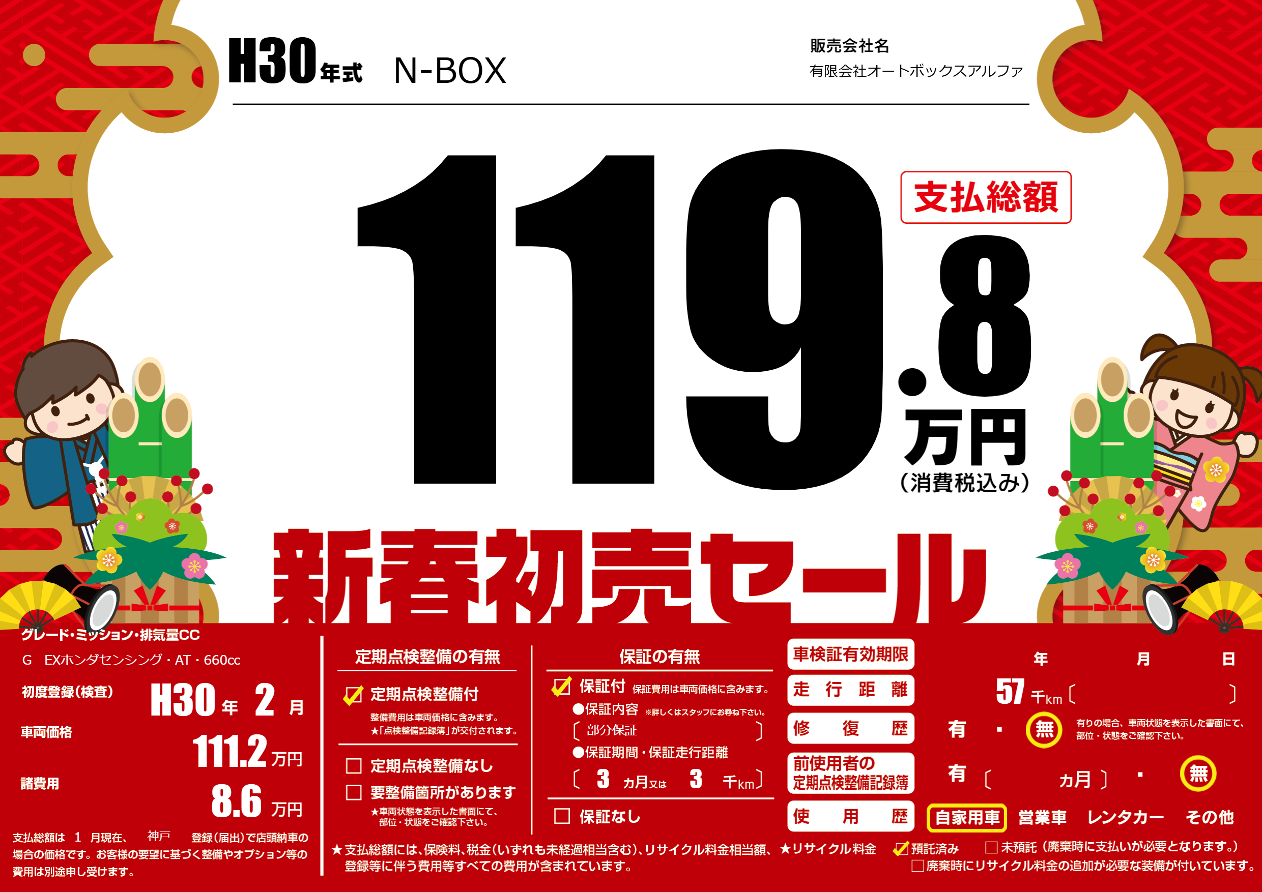 | 車名 | N-BOX | グレード ミッション 排気量 |