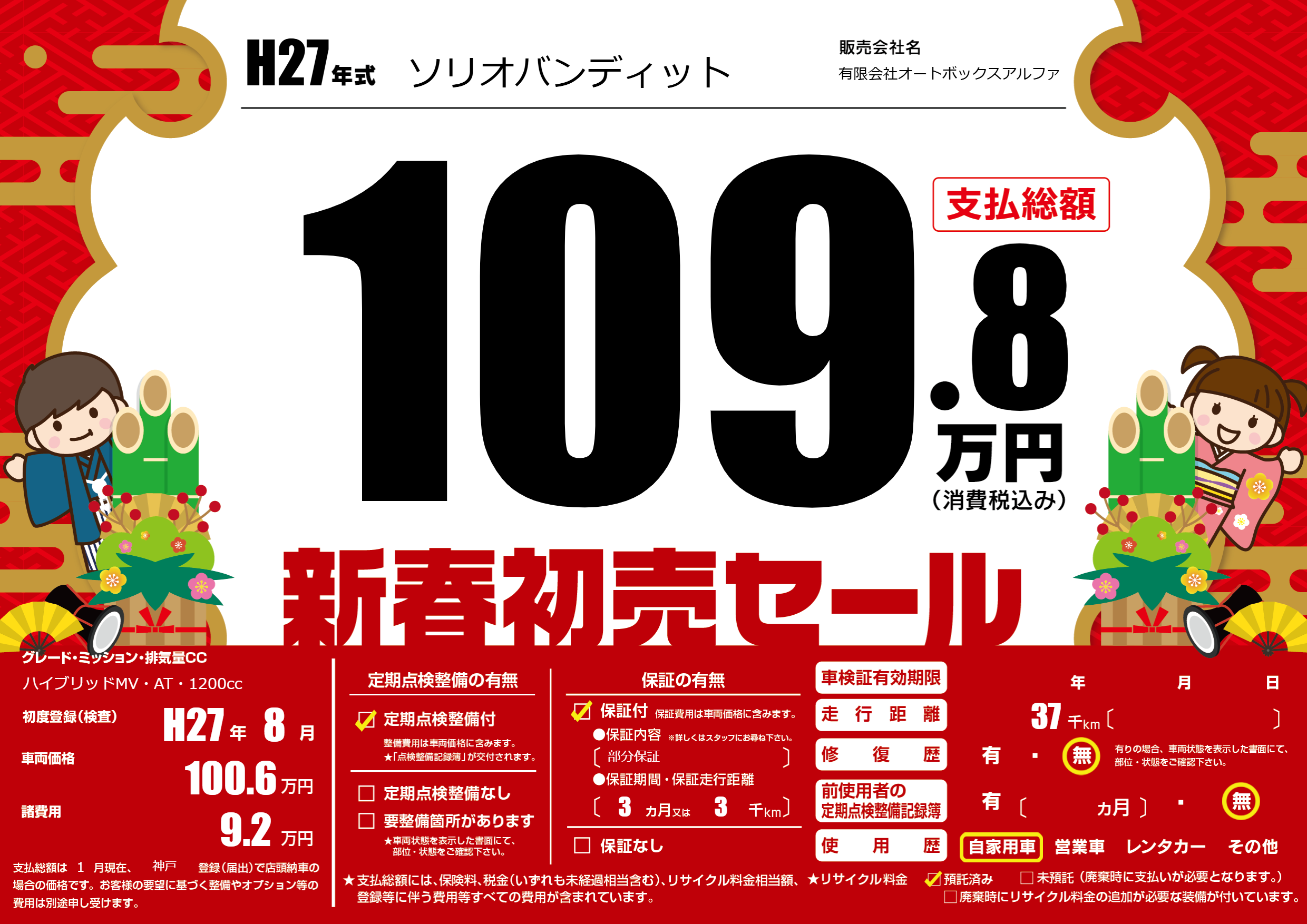 | 車名 | ソリオバンディット | グレード ミッション 排気量 |