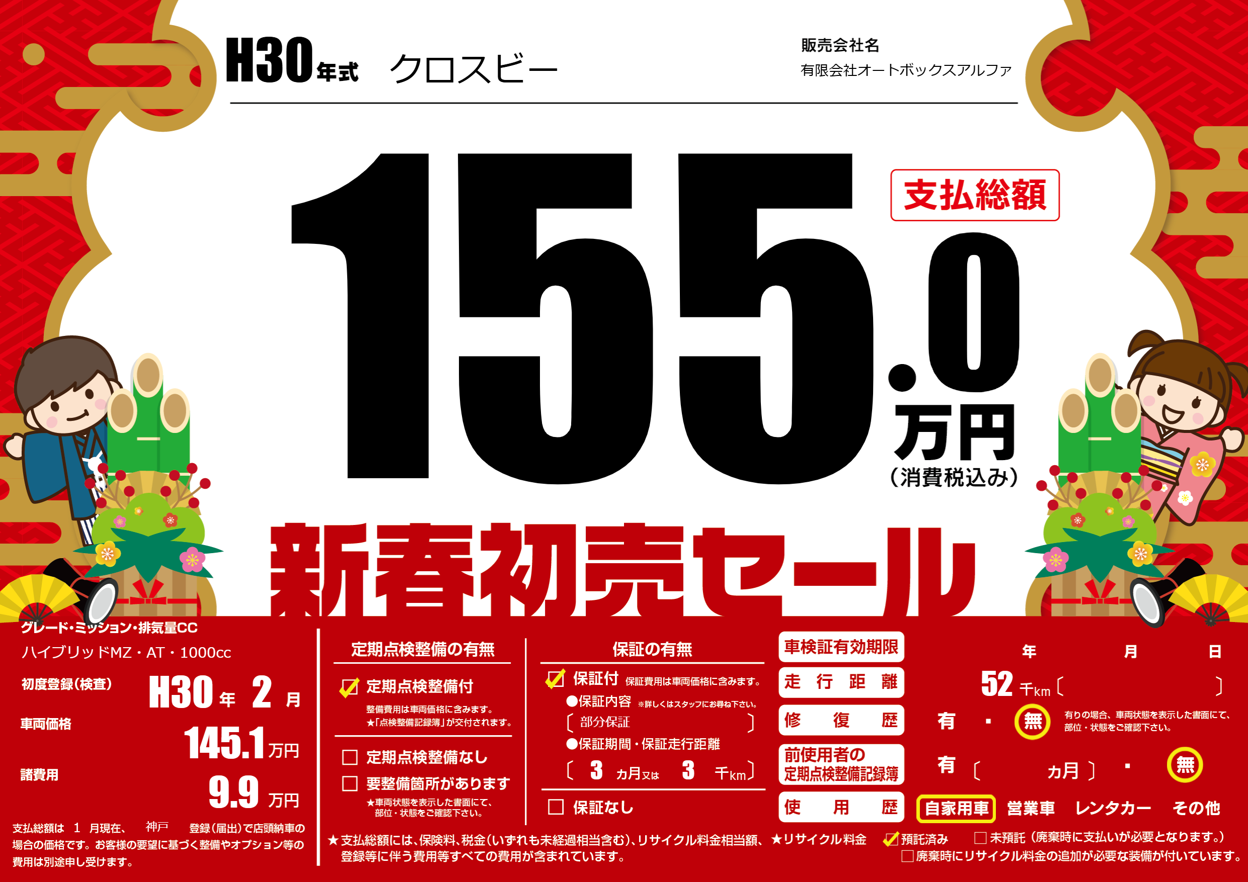 | 車名 | クロスビー | グレード ミッション 排気量 |