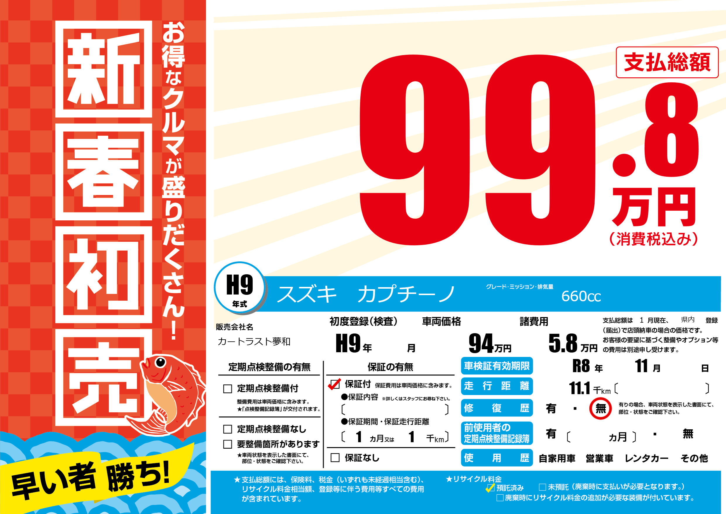 | 車名 | スズキ カプチーノ | グレード ミッション 排気量 |